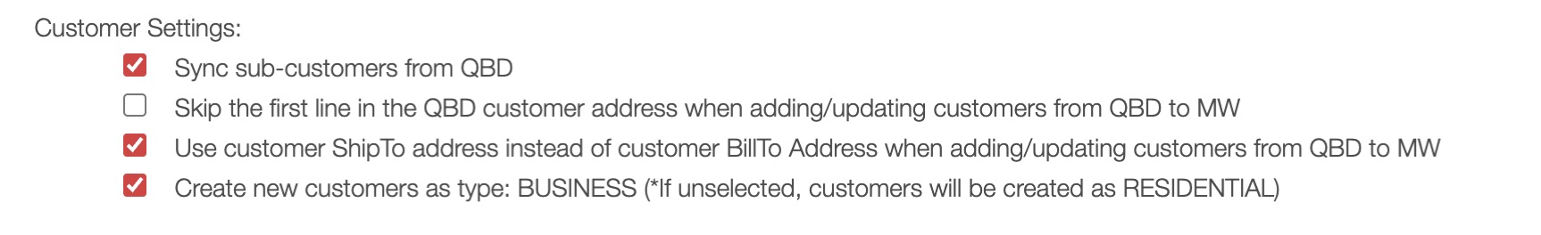 Create new customers as type: BUSINESS (*If unselected, customers will be created as RESIDENTIAL)- If checked, new customers will be created with the "BUSINESS" type.