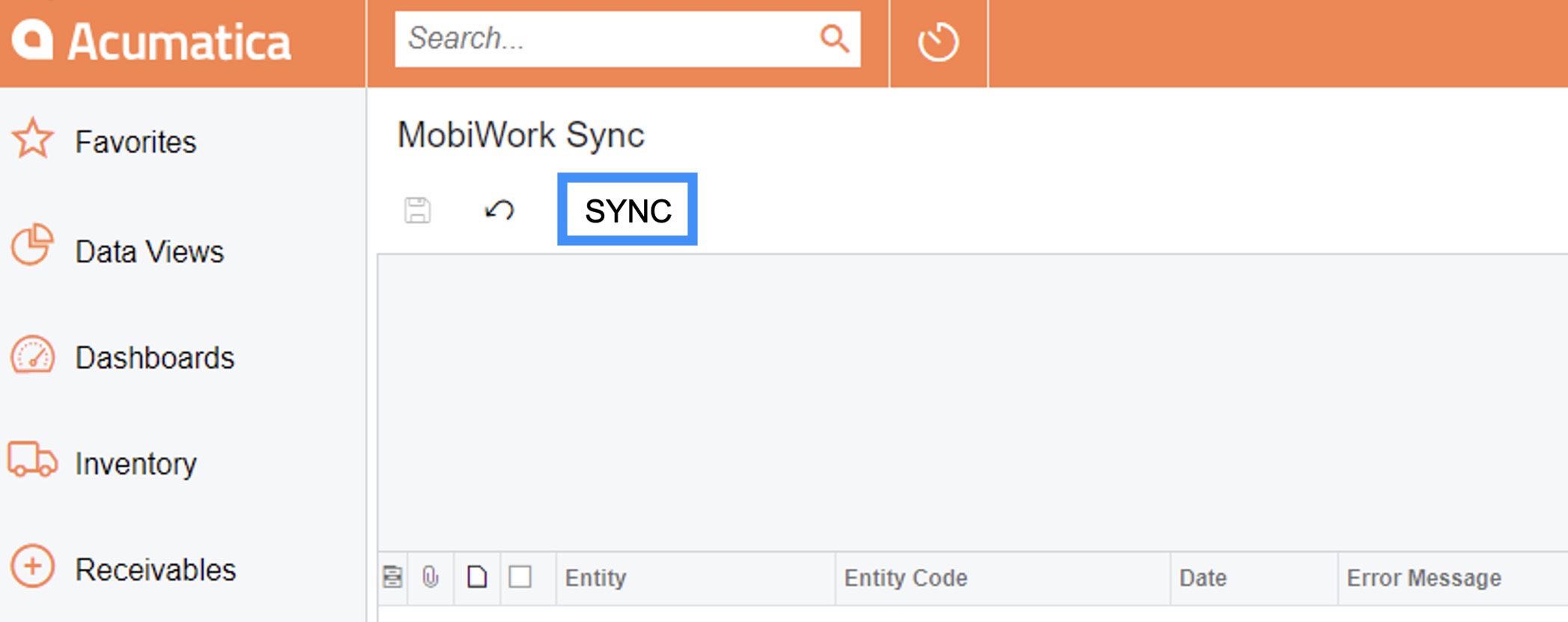 Once the package is installed, a new MobiWork Sync screen will be available in your Acumatica program to run the integration.
