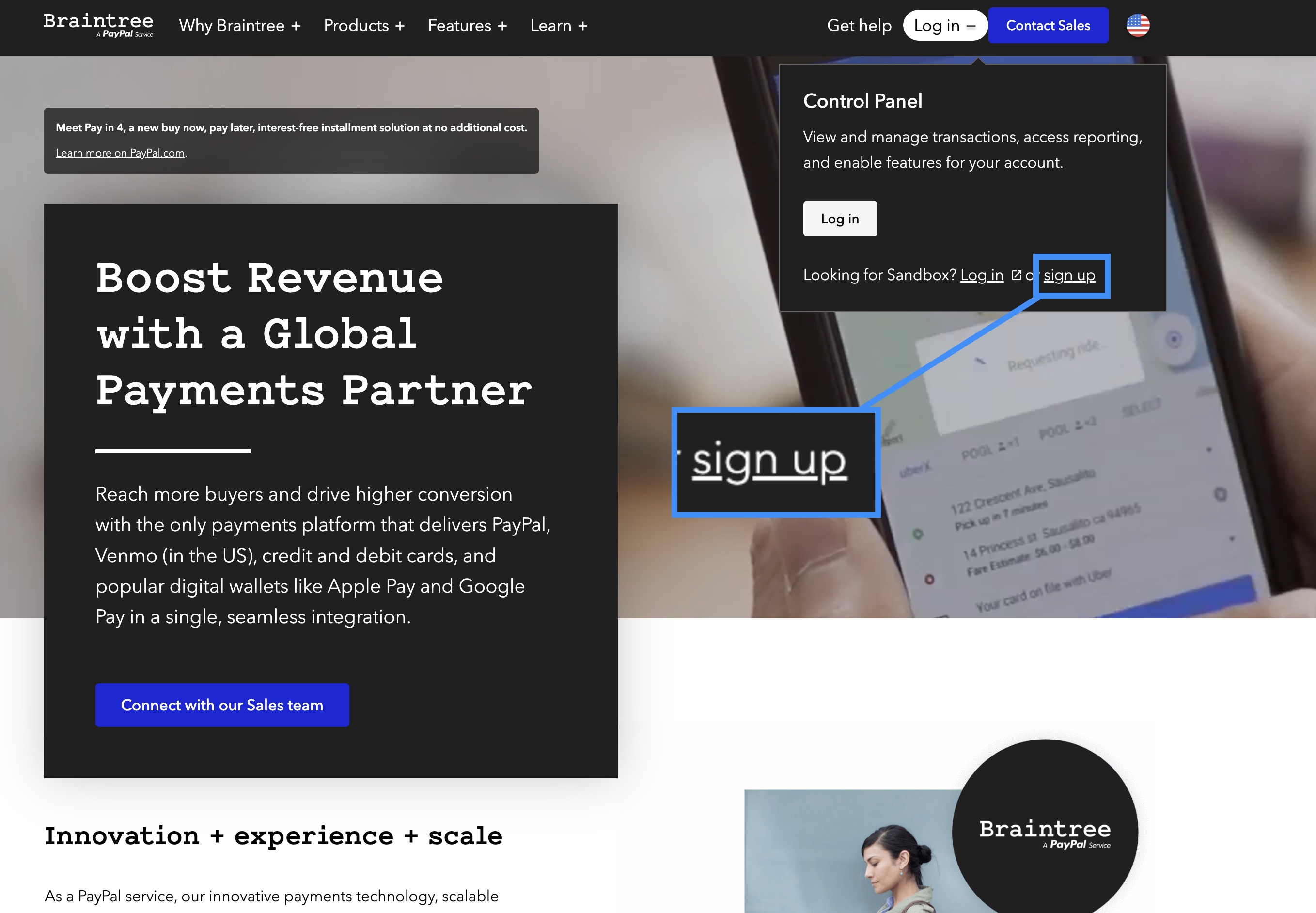 First, if you do not already have one, please create a Braintree account. You can login or sign-up on their site www.braintreepayments.com and fill out the form. You will then be contacted by a Braintree representative to set up your account: