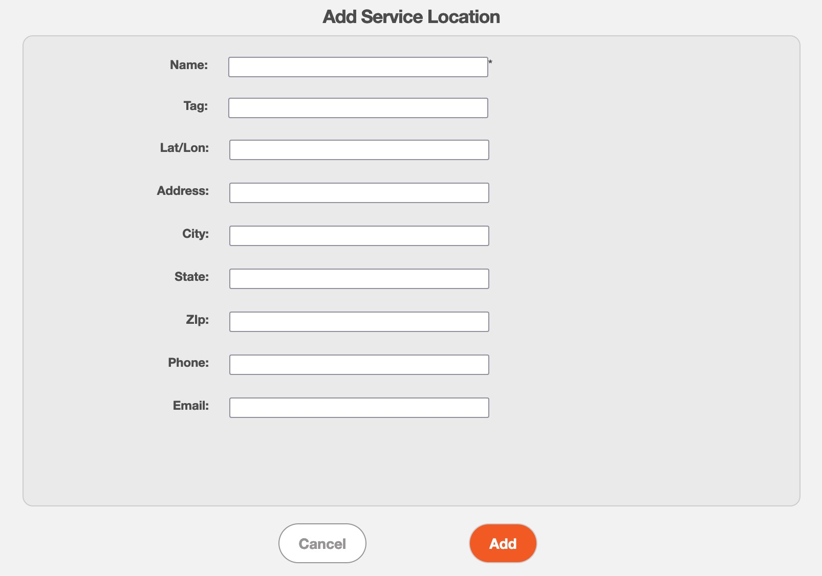 Service Locations can be added manually by hand, one-by-one, or through an Excel import/export template.