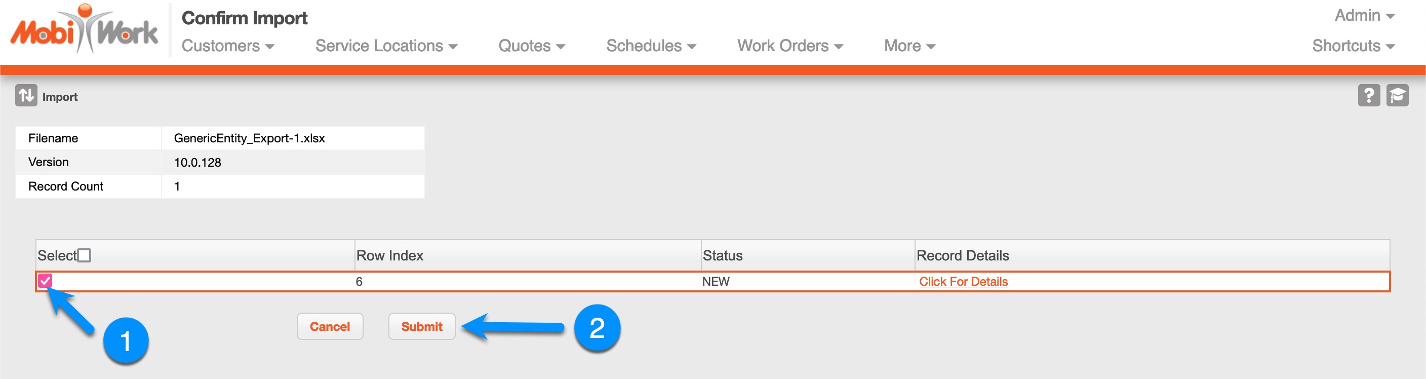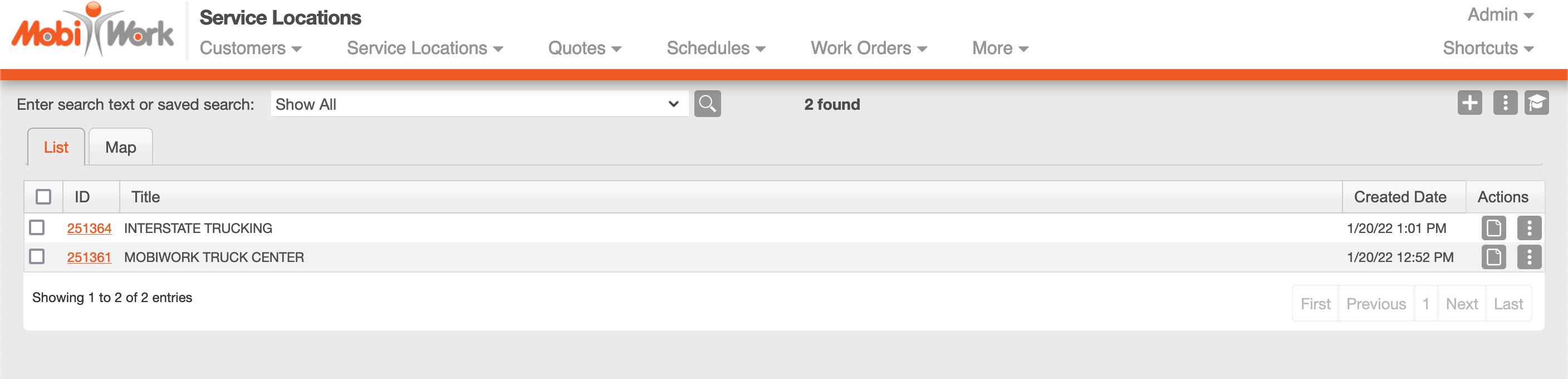 - Review the list of Service Locations recognized by MobiWork. If everything looks good, click Submit to bring in your list of service locations.