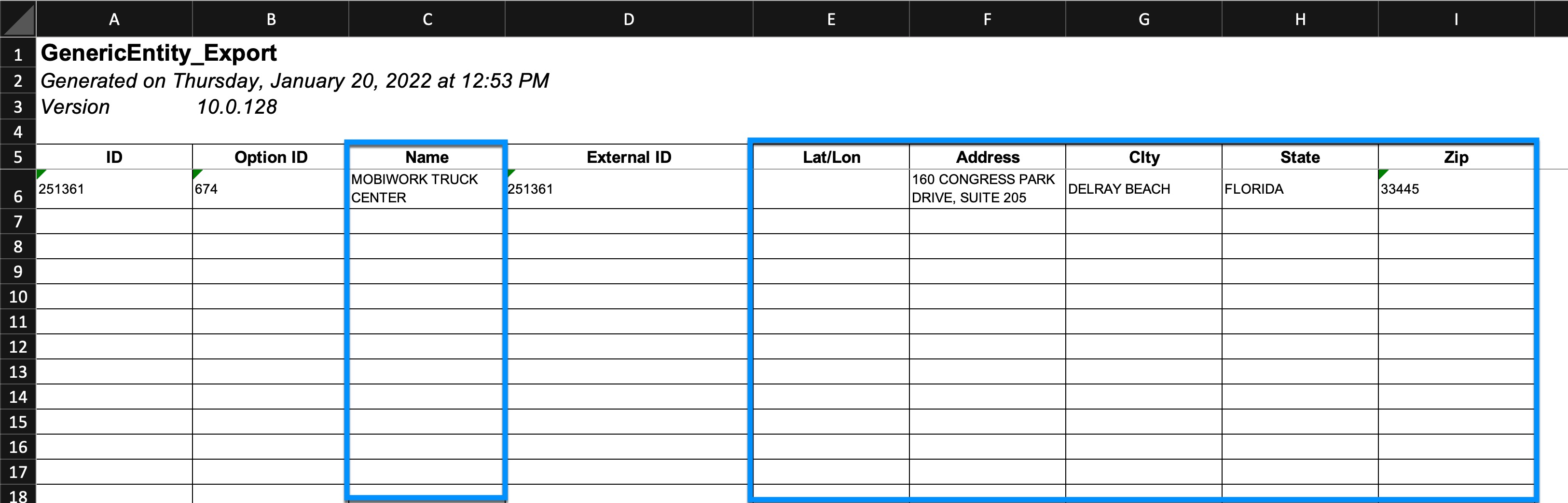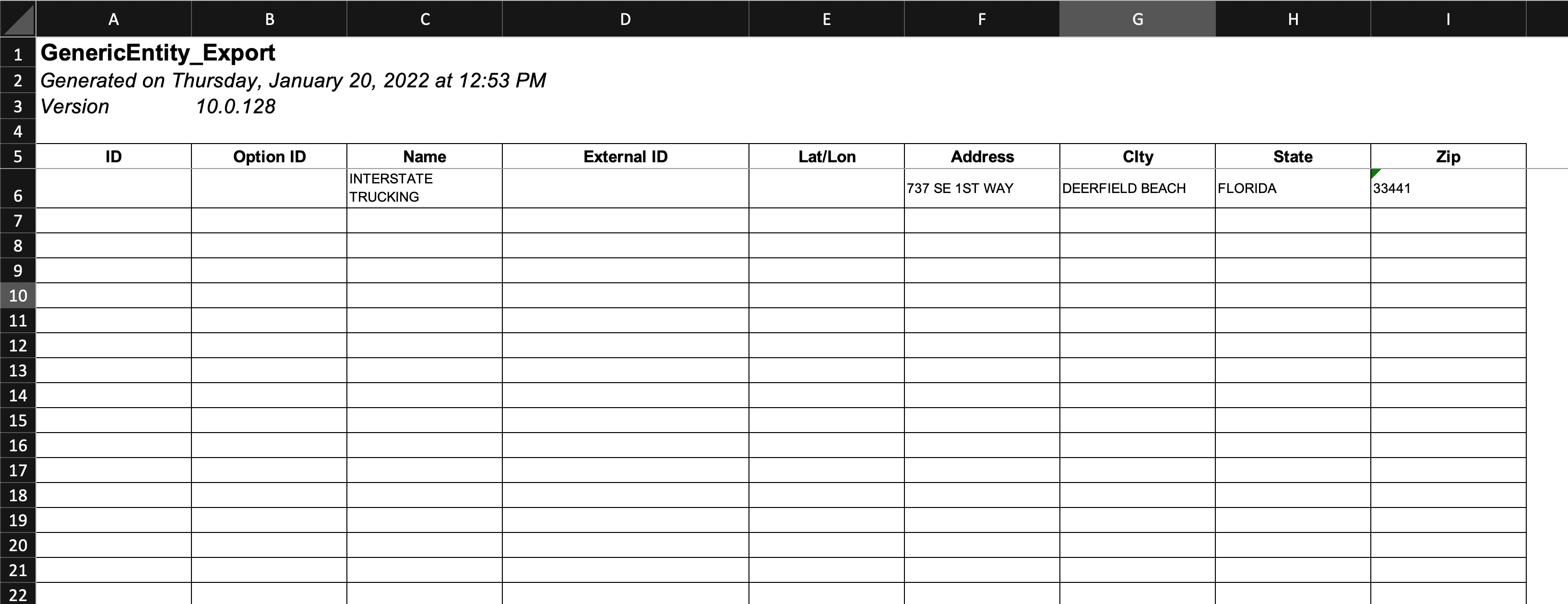 - Your web browser will download a GenericEntity_Export.xlsx Excel file; Open it.
