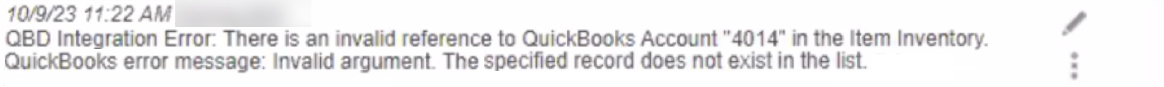 To fix this error, please ensure that the number in the MobiWork QuickBooks Desktop account settings matches the account number of the desired item, service, etc. in QuickBooks.