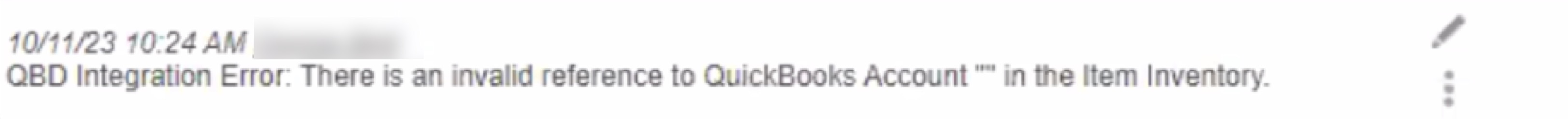 The error, "There is an invalid reference to QuickBooks Account in the item inventory," means there was no account number entered in the MobiWork Item settings: