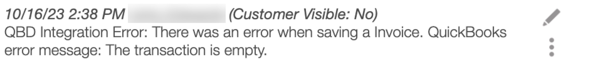 Please note that the Connector Logs will only be available for 24-hours. After 24 hours, you should use the notes column found in the View Invoice pop-up window, View Quote pop-up window, View Customer pop-up window. For more information on how to access these pop-up windows, please see the respective pages, View an Invoice, View Parts & Services, View Quote, and View Customer pages.