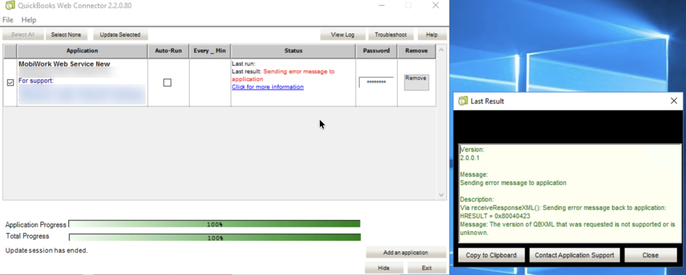 However, QuickBooks Desktop may still display a message in the Web Connector indicating that some requested information was not returned. If a genuine error were occurring, it would be recorded in the MobiWork logs, notifications, or entity notes, which would clearly indicate the problem.