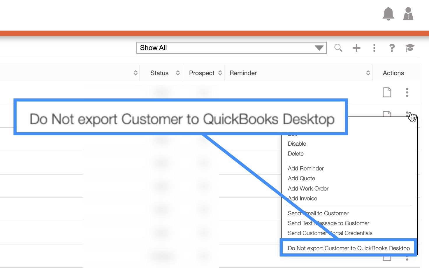 If you change your mind about syncing a customer, invoice, quote, payment, etc. you can pause the integration by selecting the "Do Not Export... to QuickBooks Desktop" option from the right-click options or the Individual Actions button: