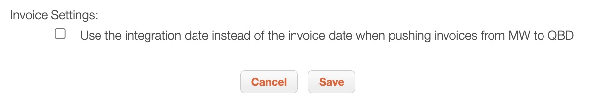 Use the integration date instead of the invoice date when pushing invoices from MW to QBD- If checked, invoices that are pushed to QuickBooks from MobiWork will use the integration date instead of the invoice date.