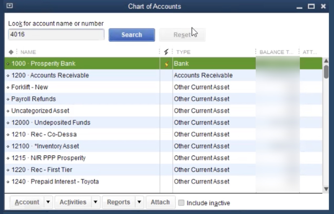 You can identify the desired account number by clicking on the "Chart of Accounts" from your QuickBooks Desktop homepage: