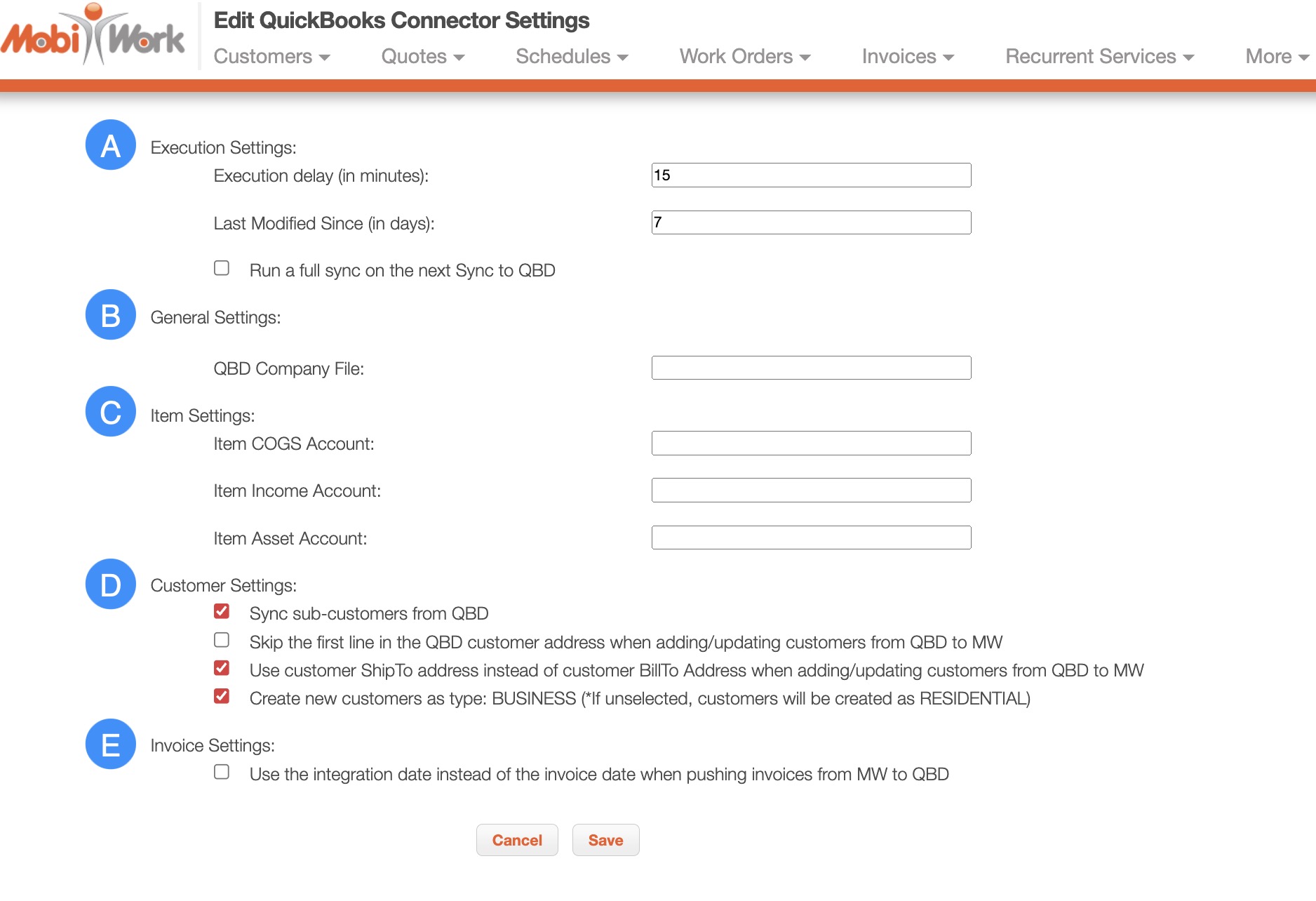 The following subsections will go into more detail regarding the different settings related to your QuickBooks Desktop Web connector.