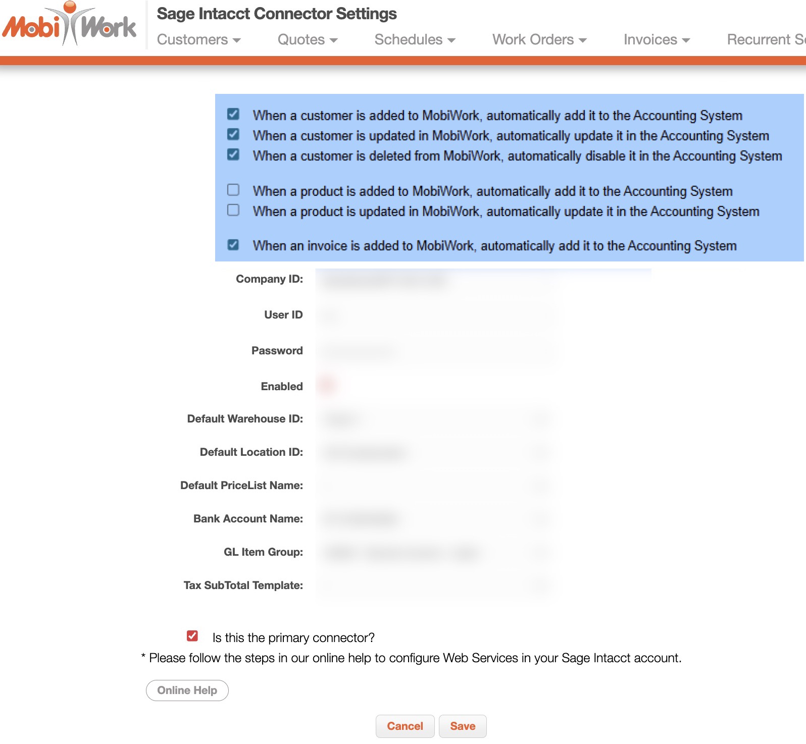 This allows MobiWork's customers, parts, and newly created invoices, quotes etc. to be reflected accurately in Sage Intacct.