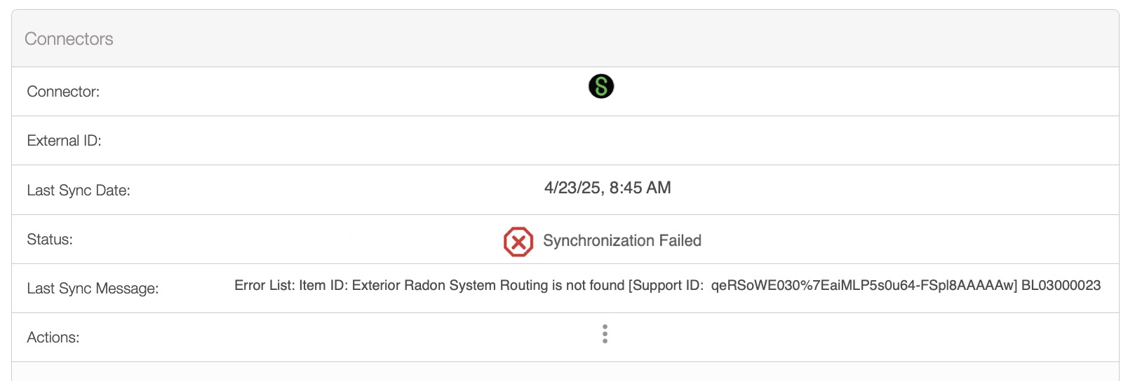 During each sync, all related entities and transactions are updated with their corresponding External ID values to maintain a clear link between MobiWork and Sage Intacct records. When a record fails to sync, MobiWork will: