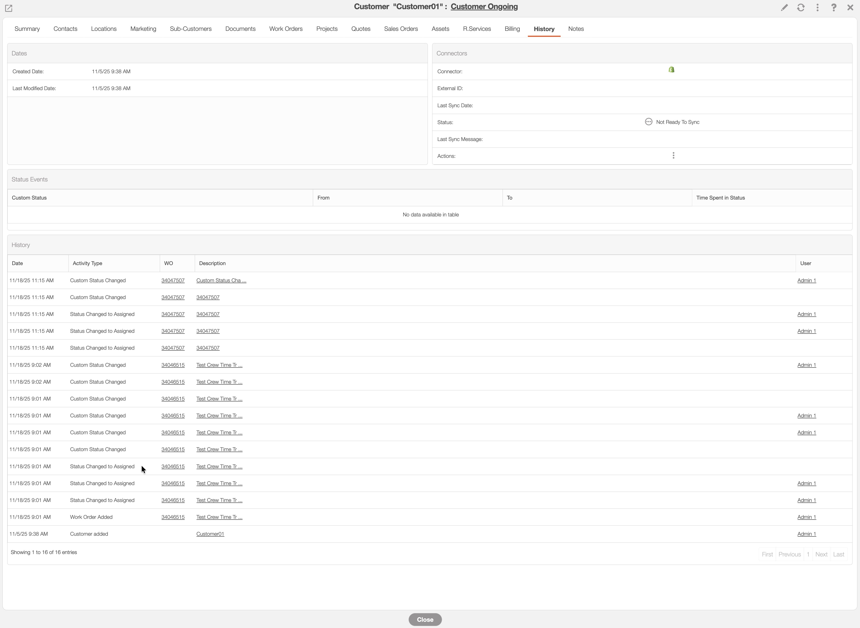 You will be notified of the error with MobiWork's system notifications; or you can see the issue in the "History" tab of the respective entity's view window: