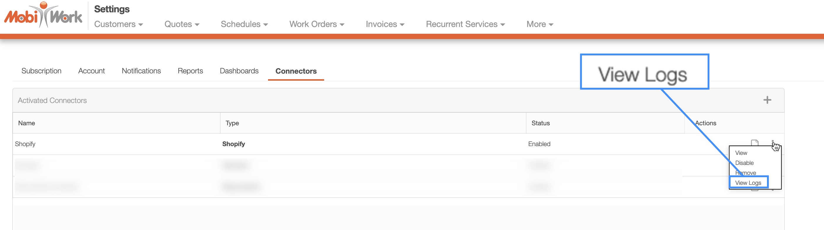If you require additional information, you will be able to locate the error logs in the Shopify Connect Logs page. You can navigate to this page from your Connector Settings page. Right-click on the selected connector and click on the "Connector Logs" option from the drop-down:
