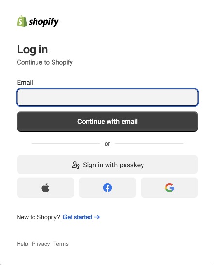 The Shopify web page will then open, allowing you to enter your login credentials: