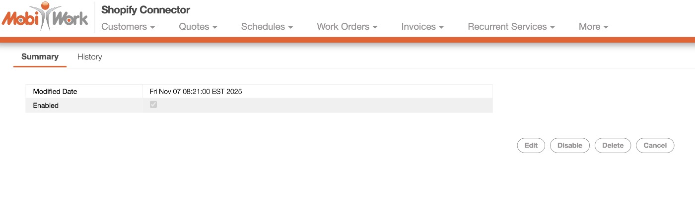 Now, you will need to log in to your Shopify account in order to authorize the connection with MobiWork. On the Shopify Connector Settings page, select the Edit button: