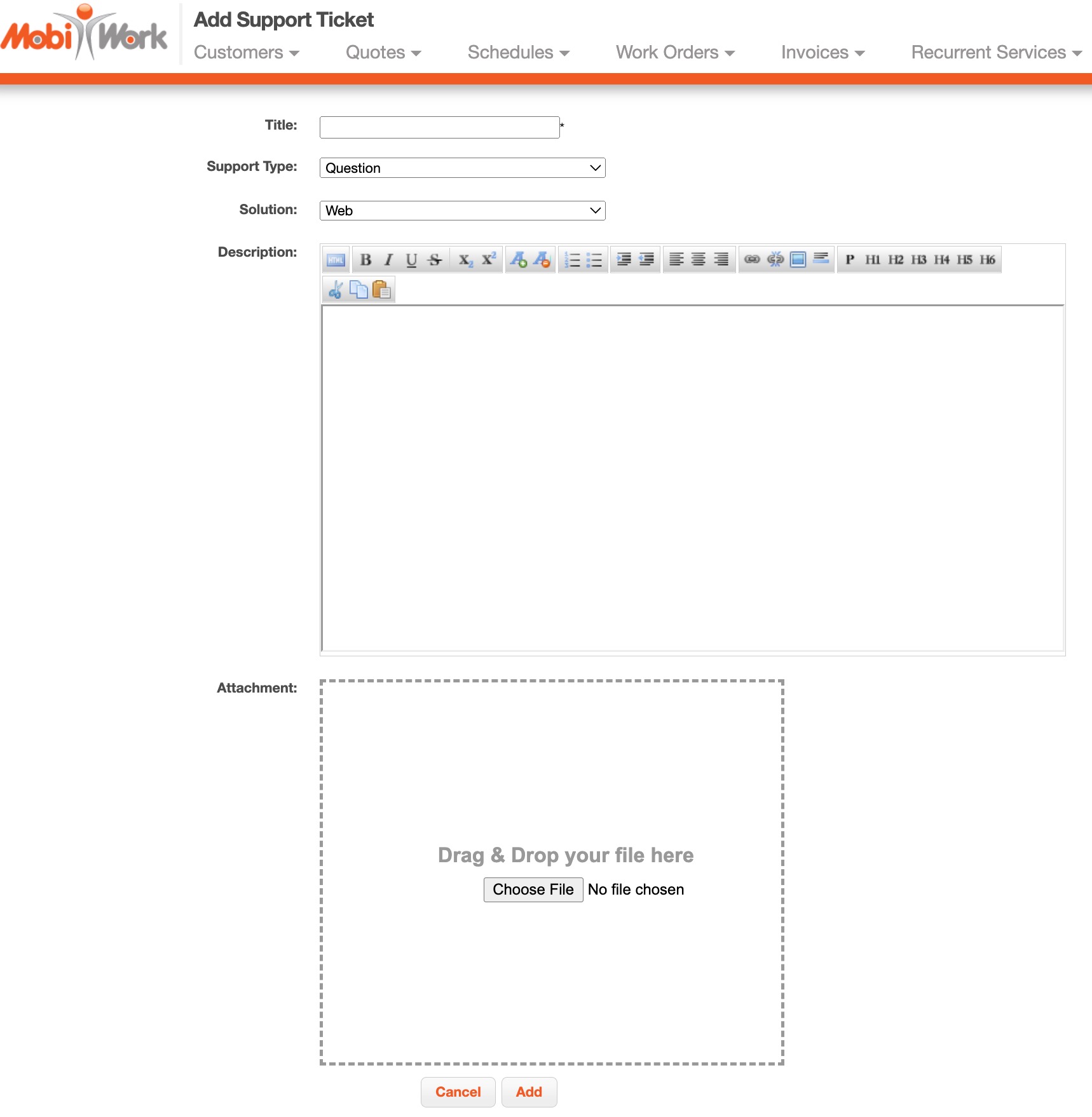 Submitting a Support Ticket is our preferred mode of contact and the most efficient method in requesting assistance from the MobiWork team.