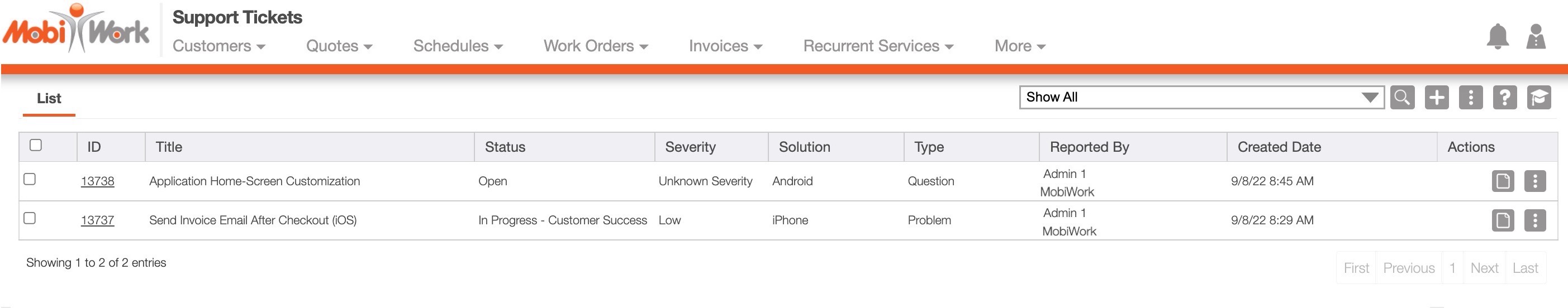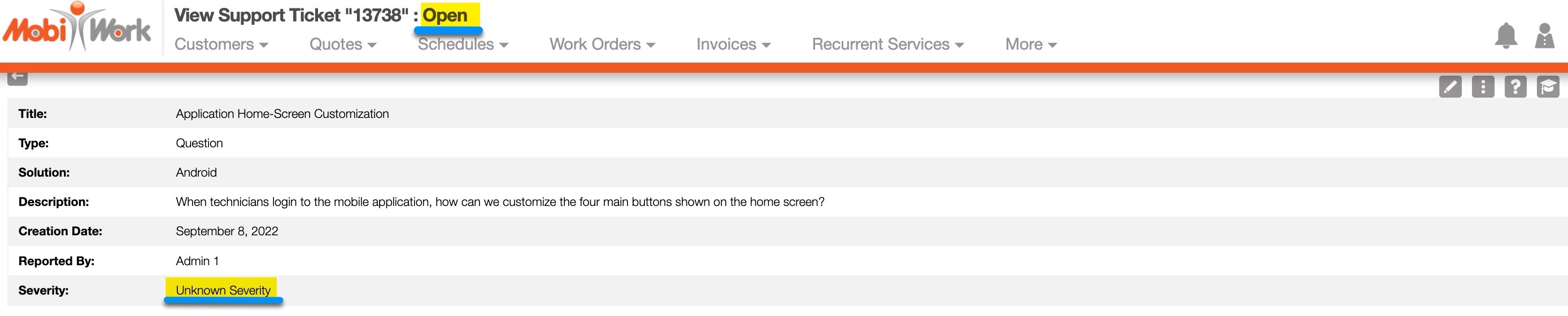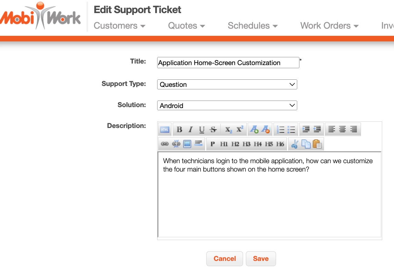 - ID: This is auto-generated by the MobiWork system; this is how all support tickets are referenced.