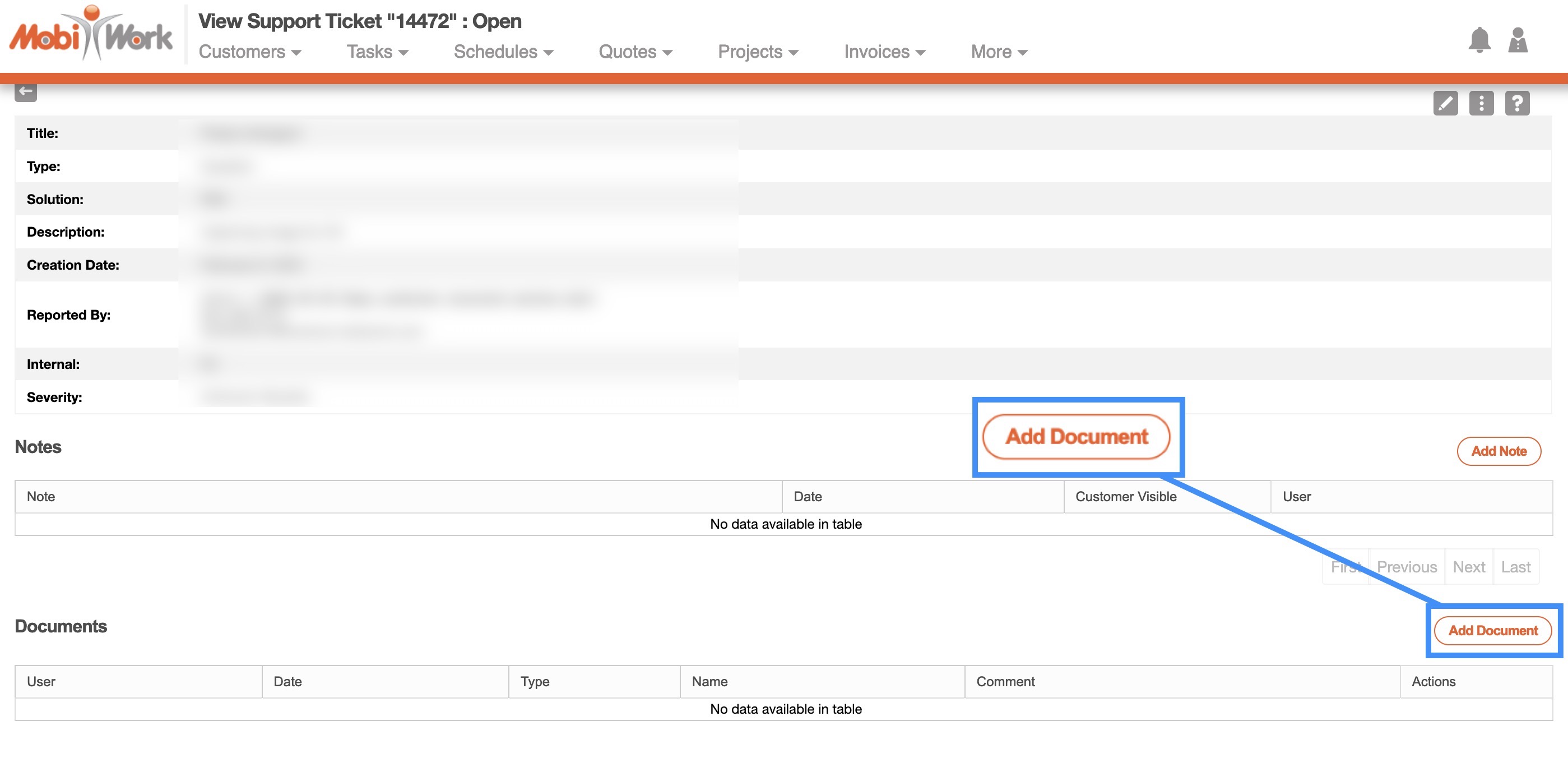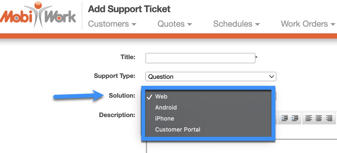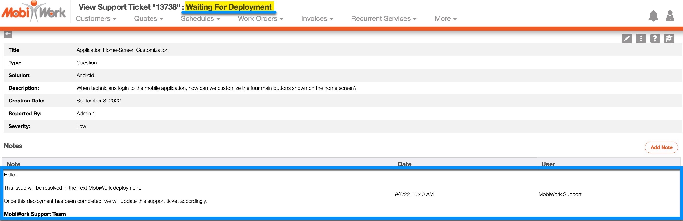 - ID: This is auto-generated by the MobiWork system; this is how all support tickets are referenced.