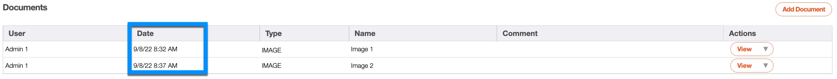 - The newly added attachment will be listed within the Documents section of the support ticket, in ascending order by Date.
