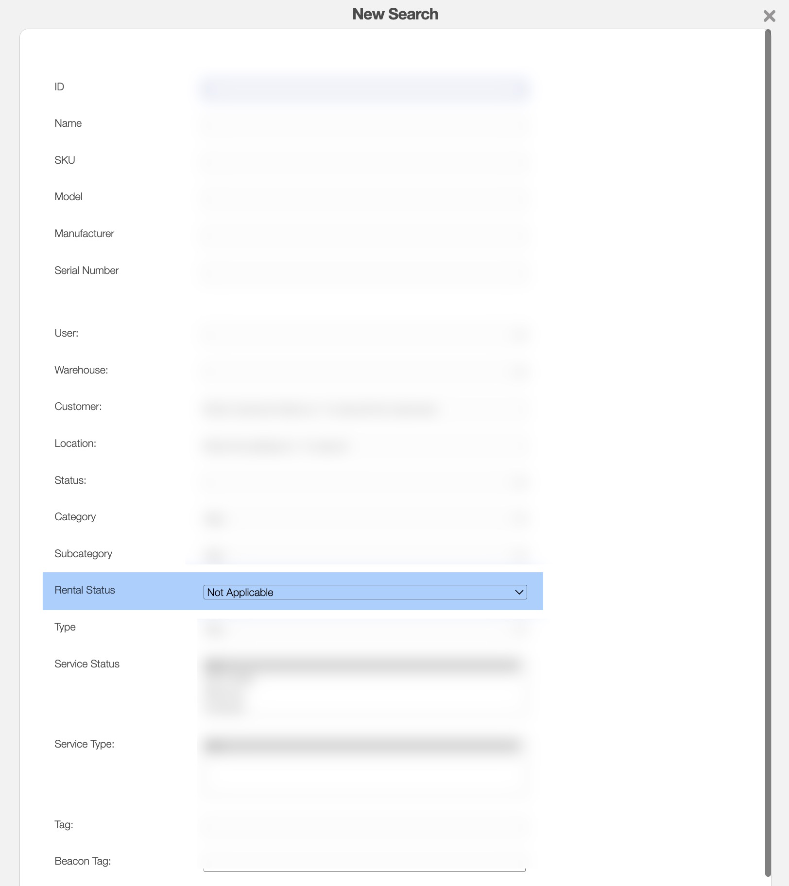 With the Asset New Saved Search you will be able to search for asset's with the following rental statuses: