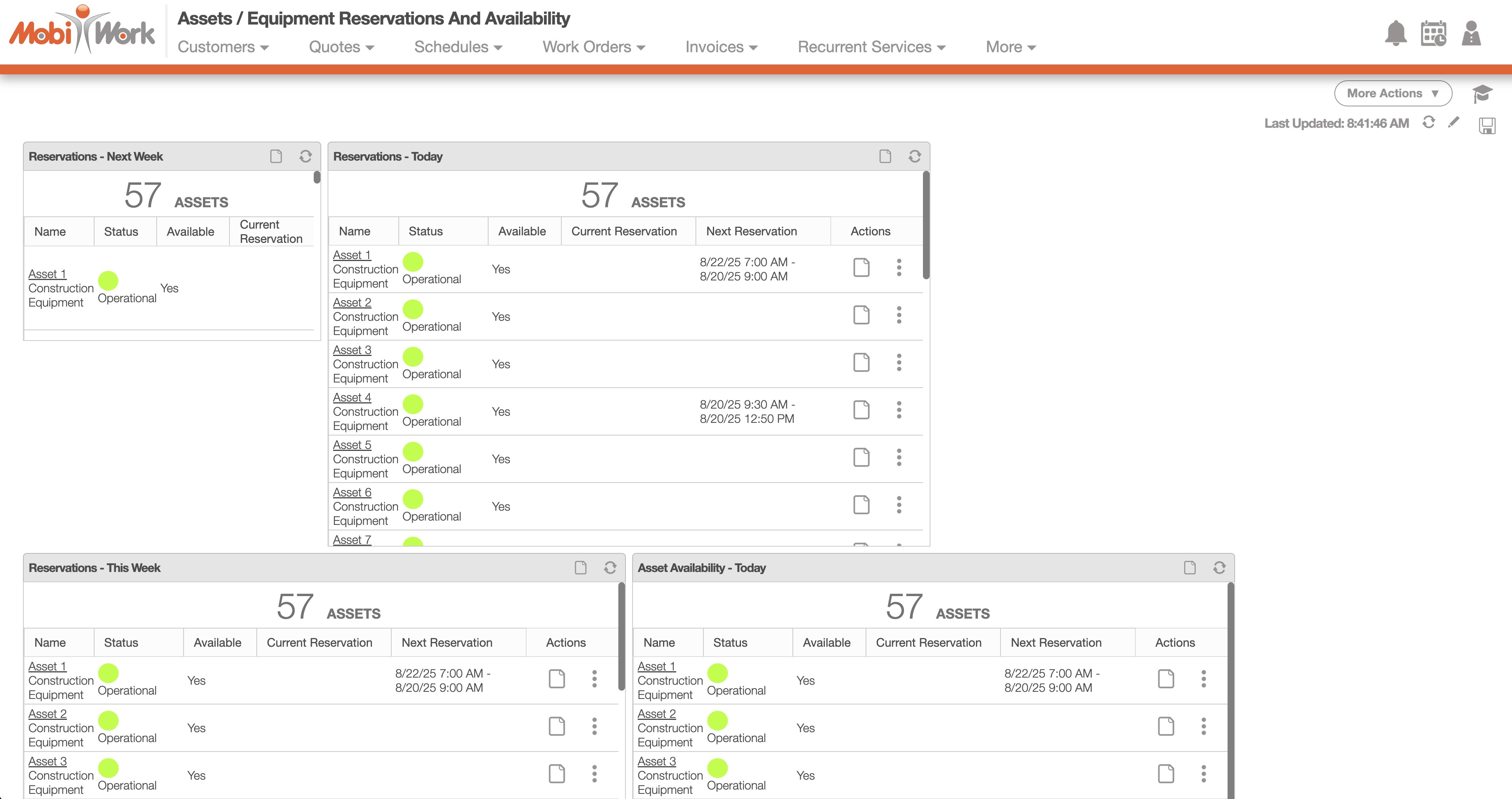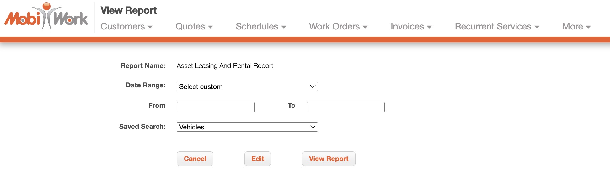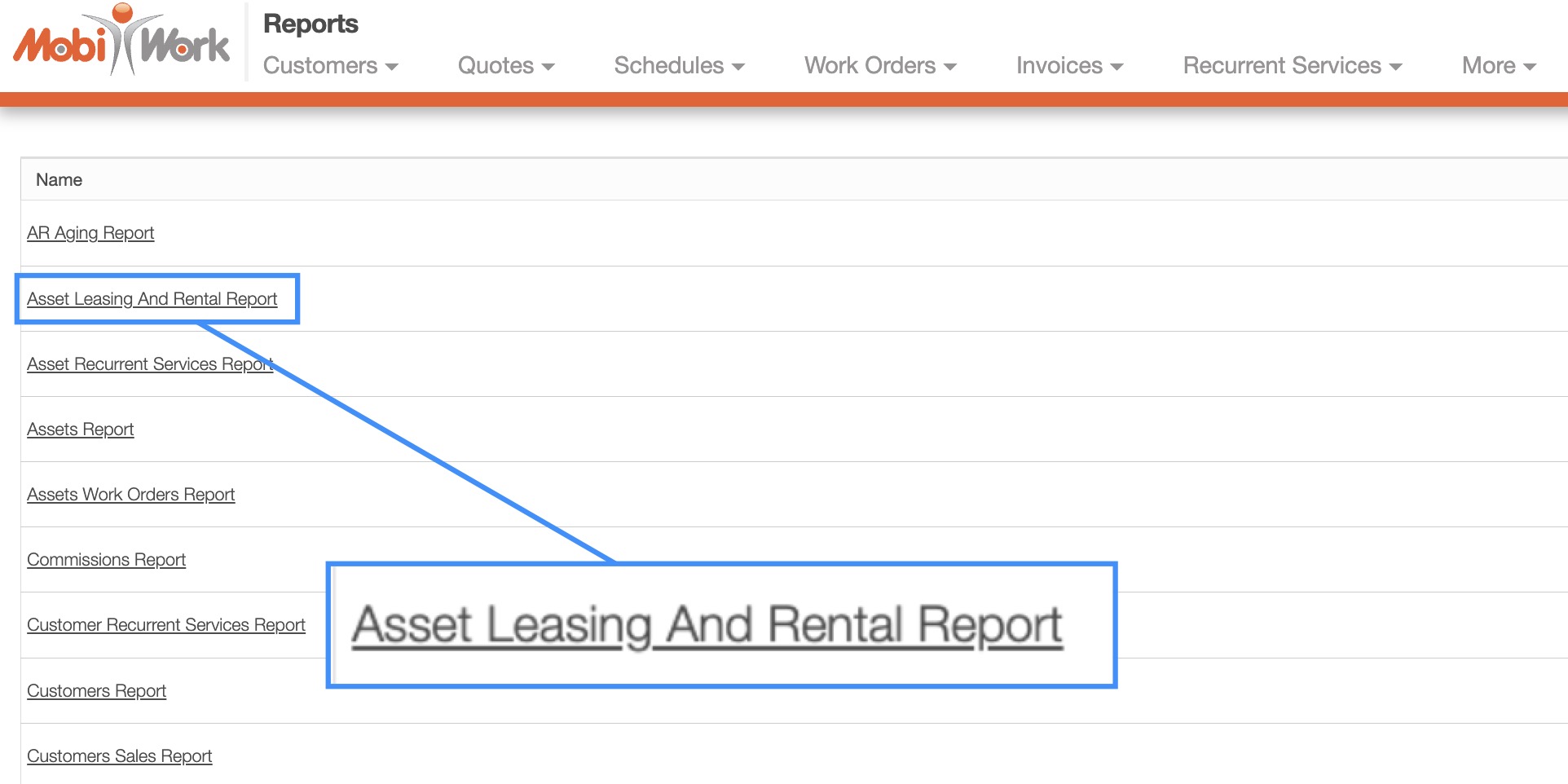 All asset rentals and leases are now fully tracked in MobiWork. Reports can be generated on demand or scheduled to be automatically emailed on a recurring basis.