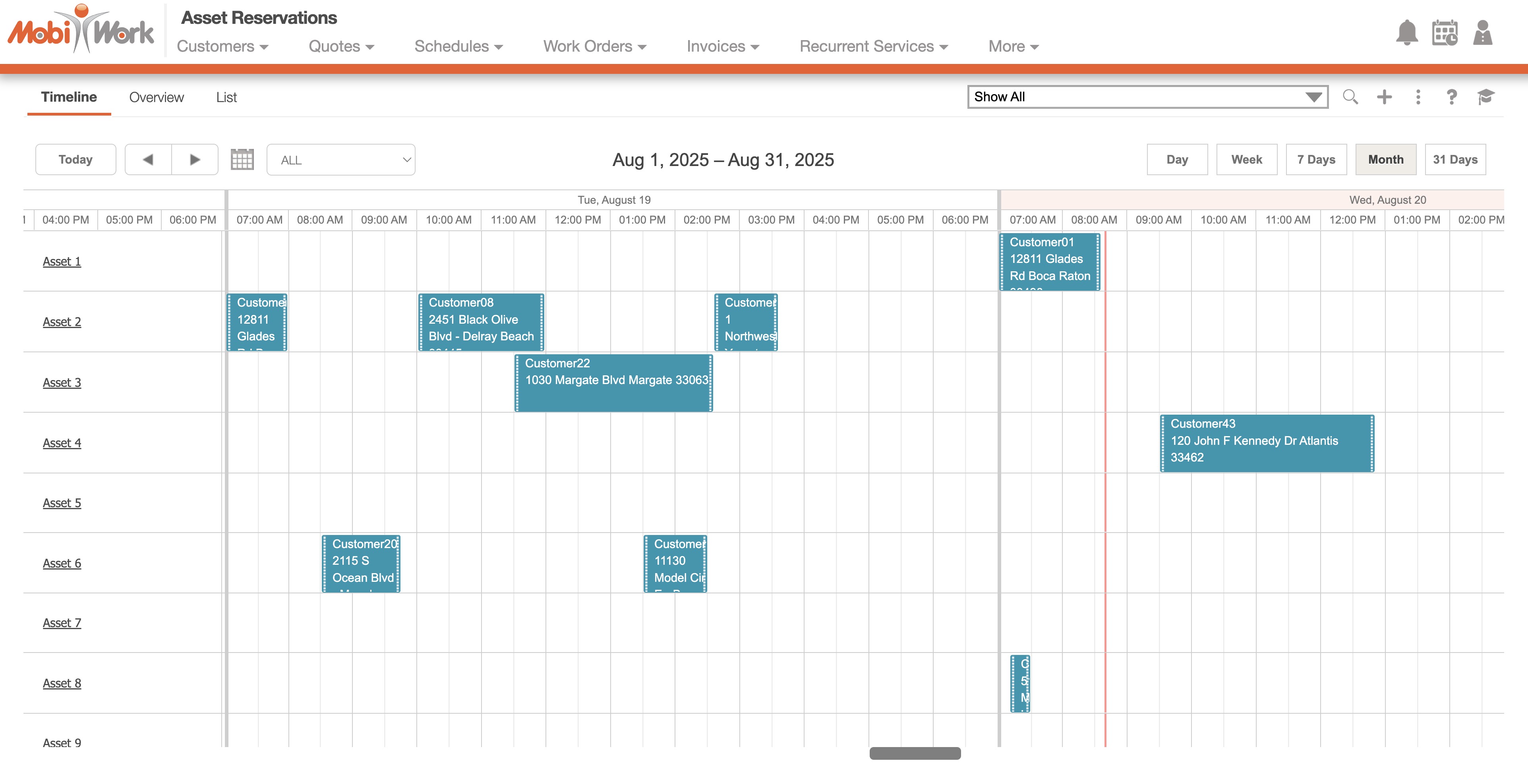 Asset rentals are applicable for both non-serialized assets and regular assets; please note, that in order to rent the asset or equipment, it must first be registered in MobiWork. Asset rentals enable users and customers to rent designated assets for a defined period and rate. This feature provides clear visibility and transparency throughout the rental duration, ensuring you always know who has your assets and for how long. You can easily identify which assets are currently rented through the Asset Dashboard or with the Asset Rentals Timeline. This section will highlight some commonly asked questions regarding asset rseservation.