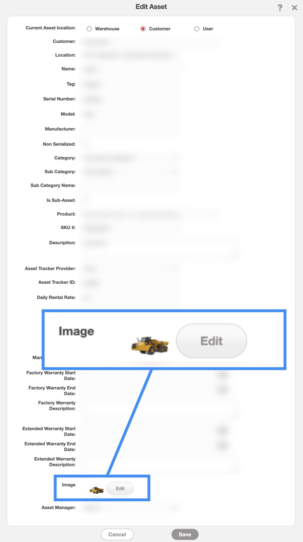 Once the asset is ready for an image, you will need to access the Edit Asset pop-up window. Please see the Edit Asset for more information on how to access this window.