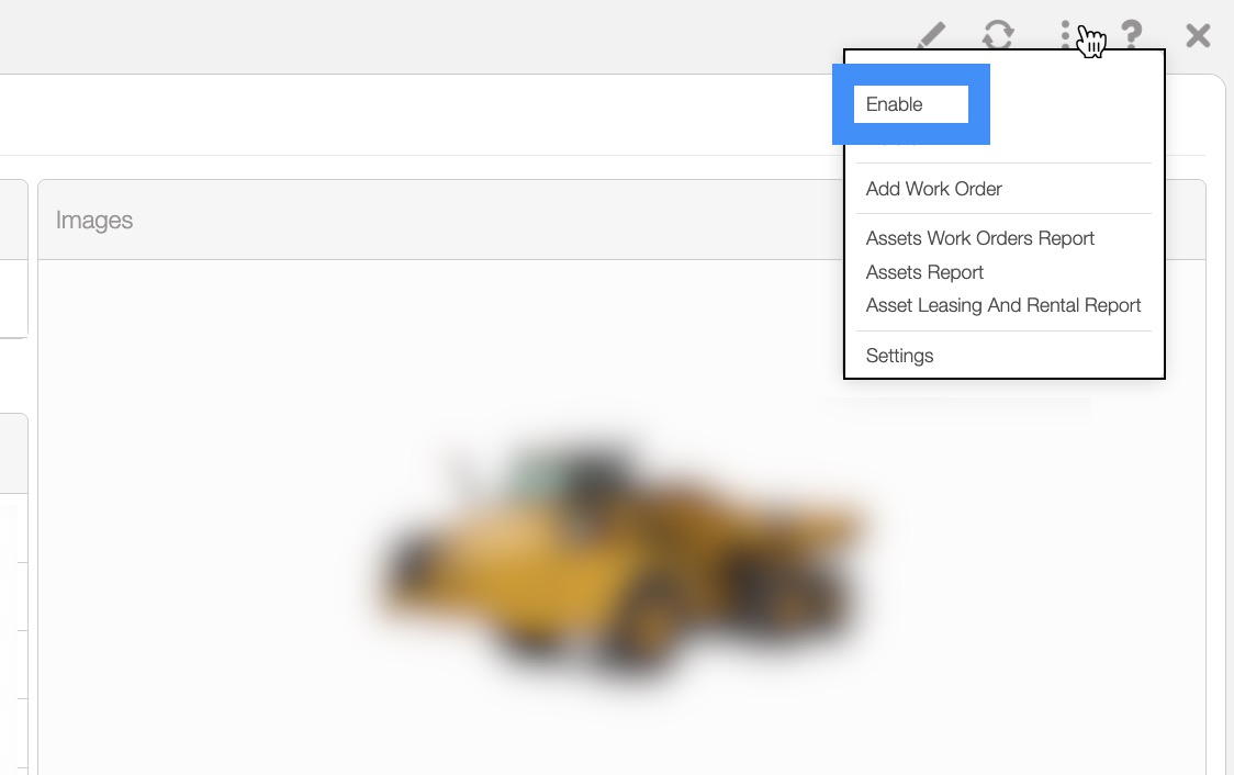 You will be able to enable an asset through the Assets feature page. For more information how to access this page, please see the Asset List page.