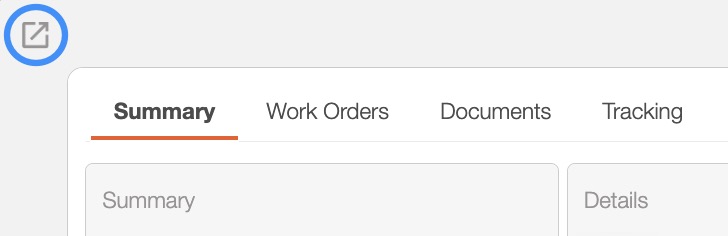 The Arrow icon (found in the top left of designated boxes) will open the corresponding tab in the View Asset pop-up window.