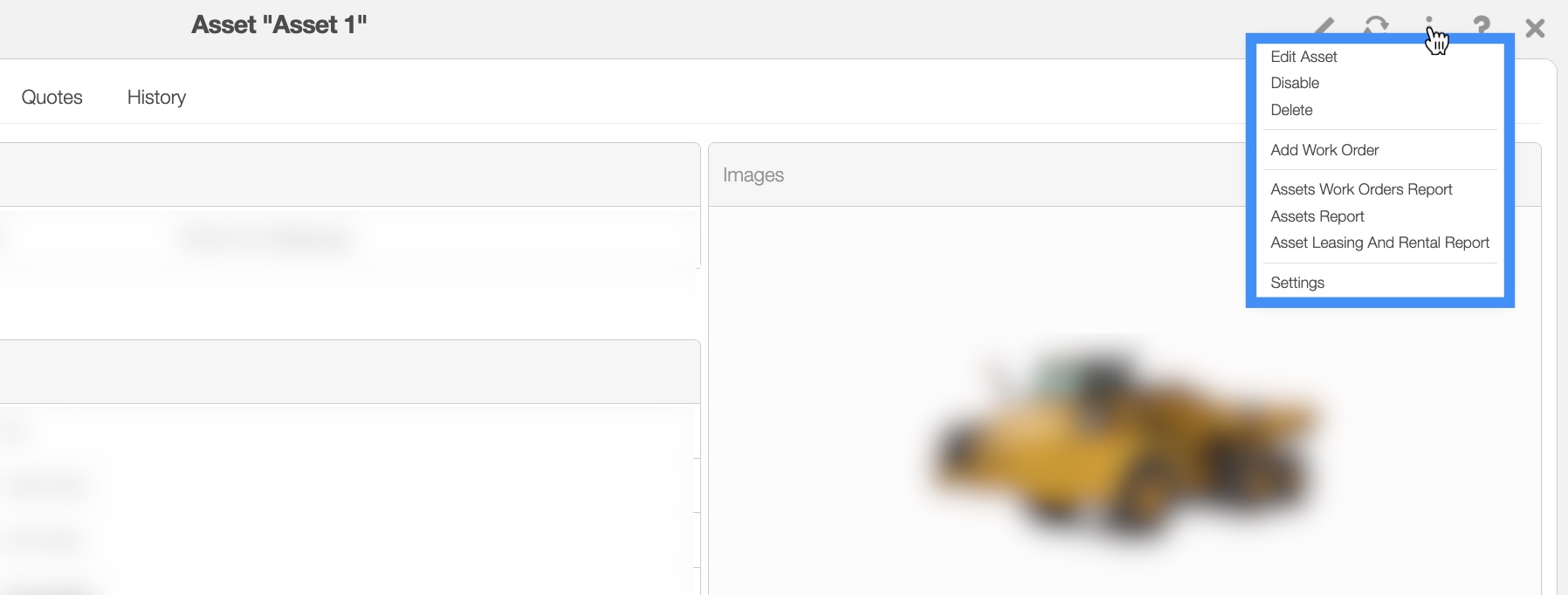 | "Add Work Order" | Allows the user to add a work order associated with the asset. |