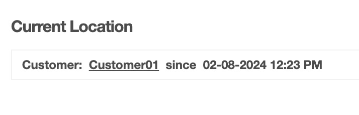 The "Current Location" subsection will display the current location of an asset in addition to the duration of how long (i.e., date and time) the asset has been at the current location.