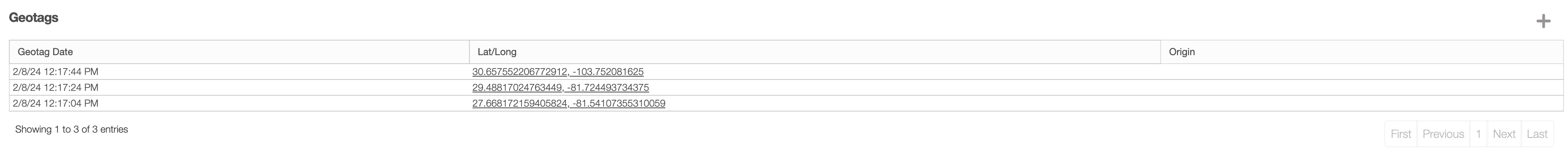 | "Geotag Date" | The date and time that the geotags for the asset was added to the tab |