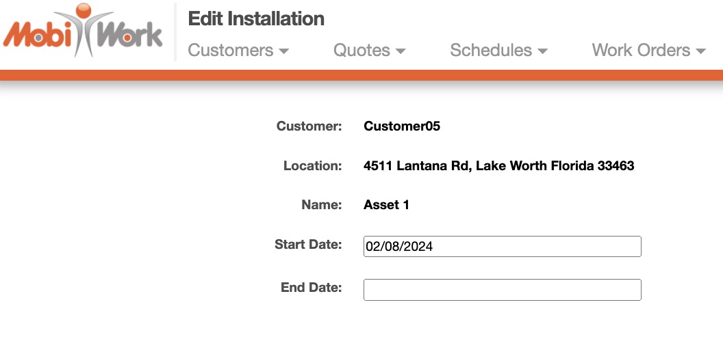 | "End Date" | The end date of the installation (when the asset is dissembled) |