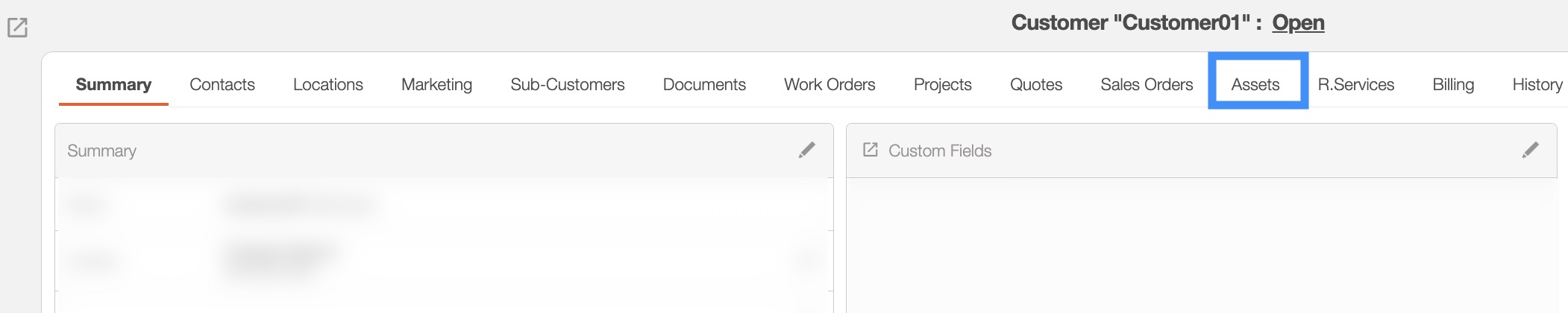 Another way you can access the View Asset pop-up window is through the View Customer pop-up window. For more information on how to access the View Customer pop-up window please see the View Customer page.