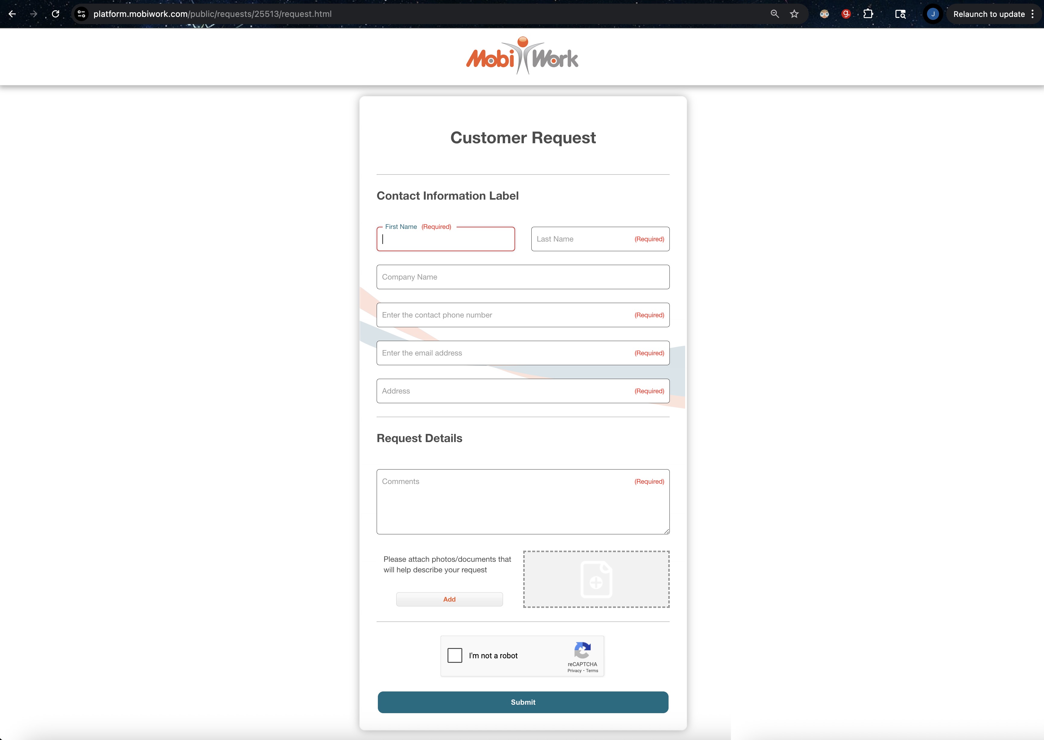Customer Requests allow your customers to submit a quote or work order request directly through your website or even through social media. These requests provide a convenient way for customers to connect with you, while also capturing all the required information upfront, helping to streamline the creation of work orders and quotes.