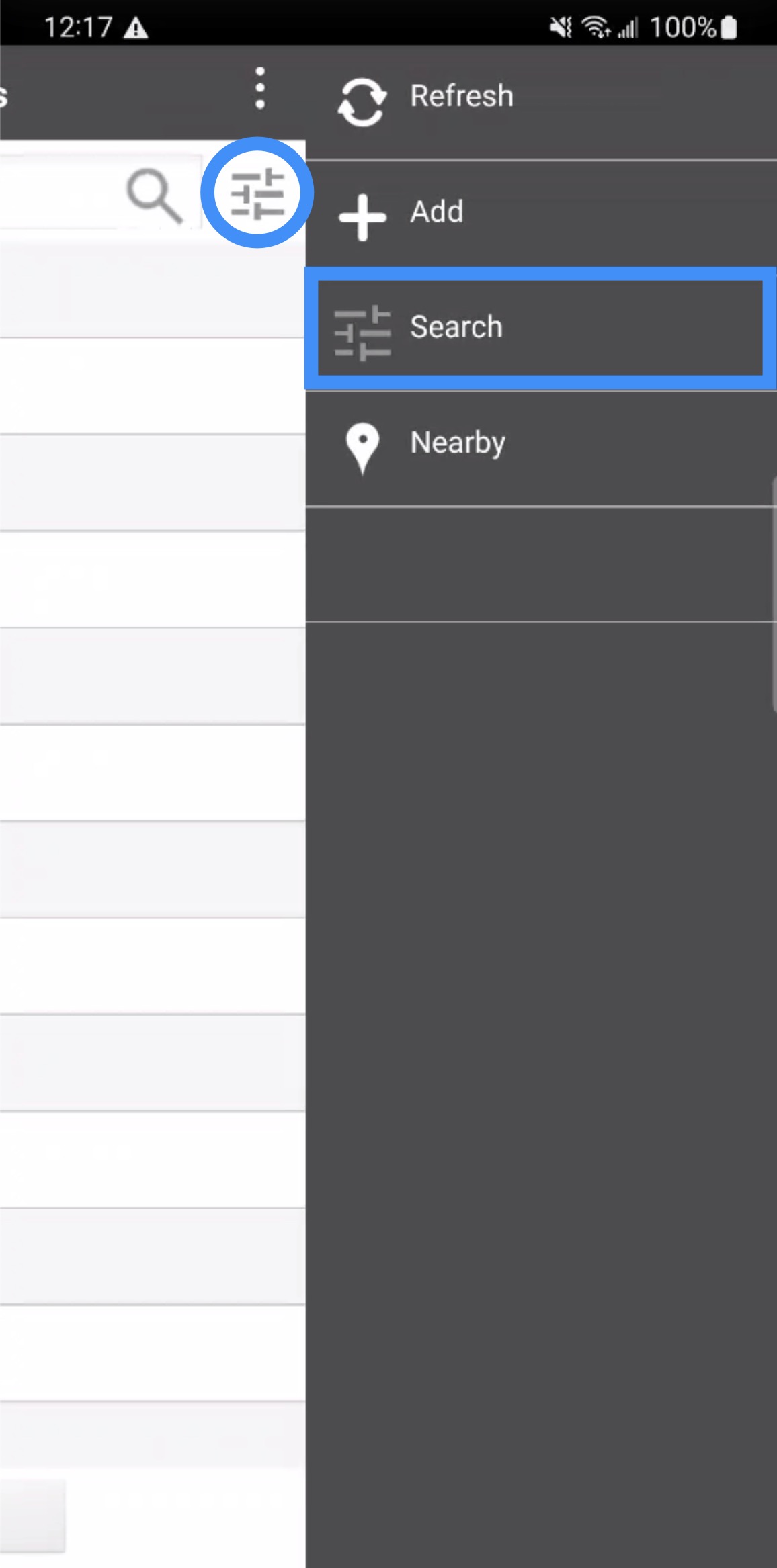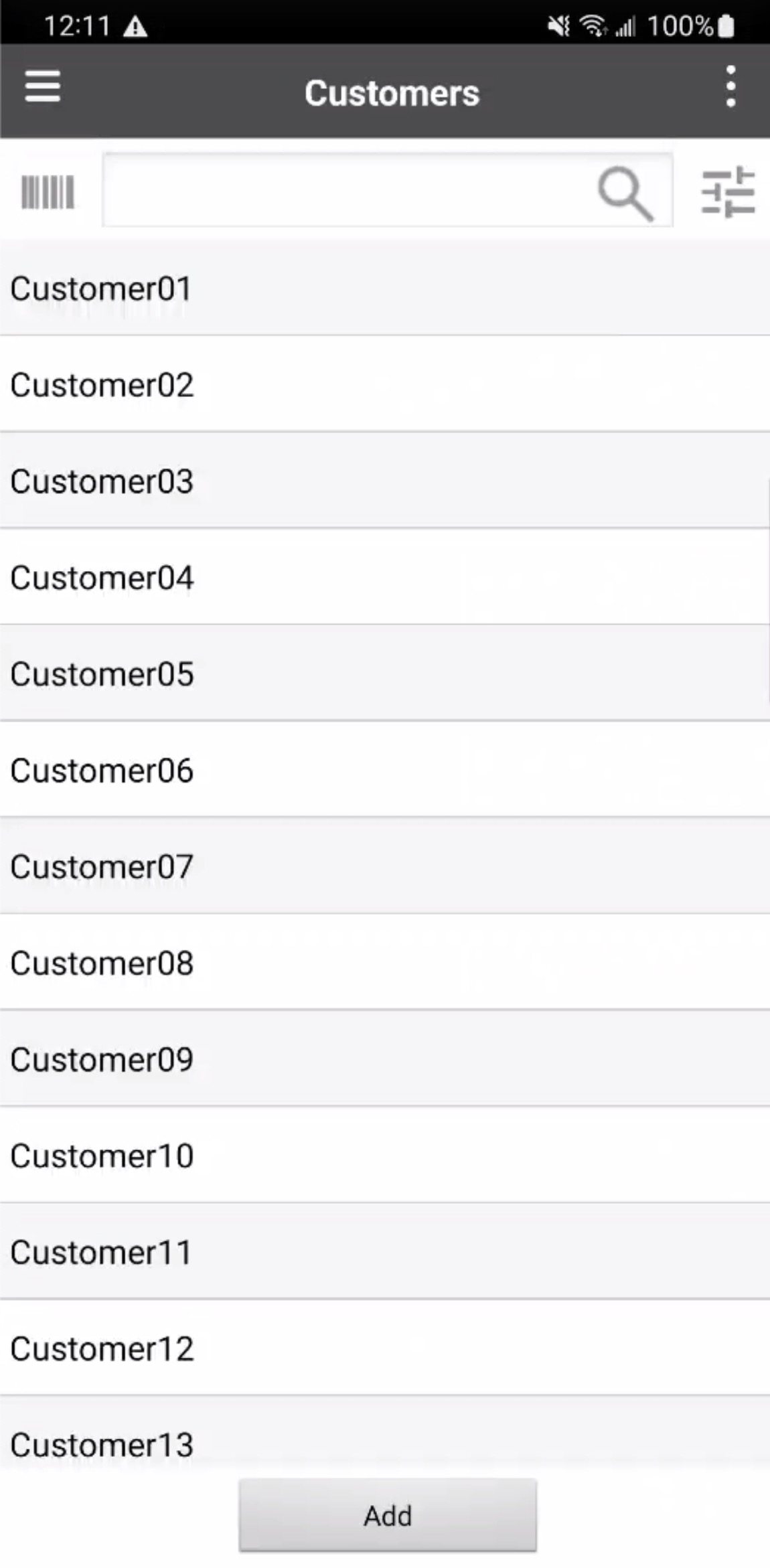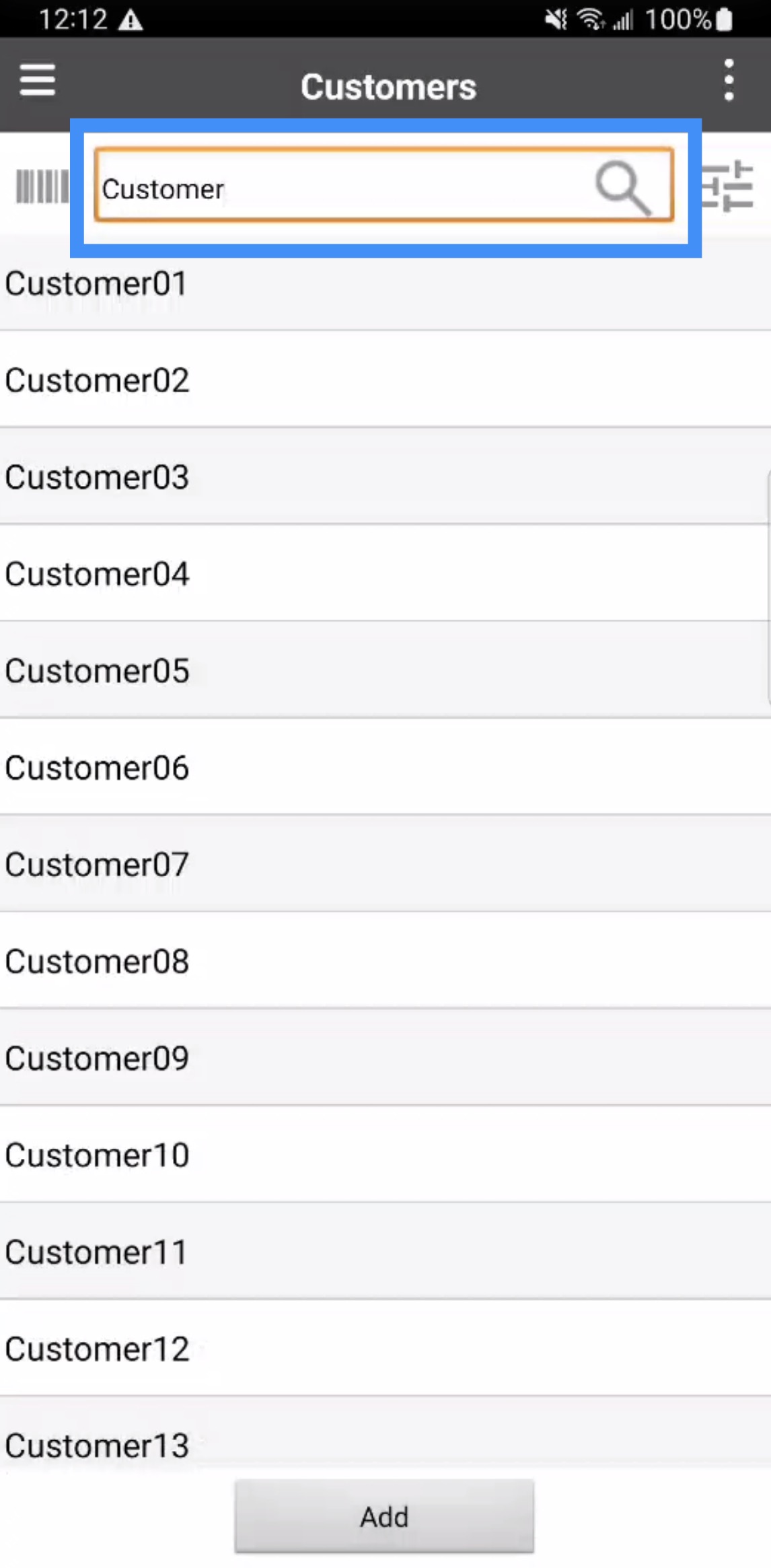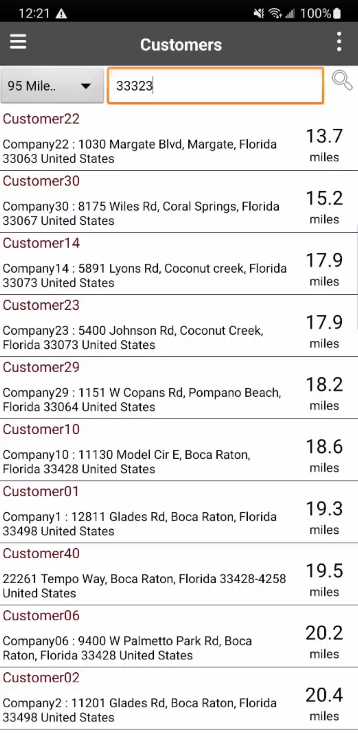 In the MobiWork app, you can easily search through your company's customers; you can search for your customers through the search bar, the magnifying glass, or by proximity to your location.