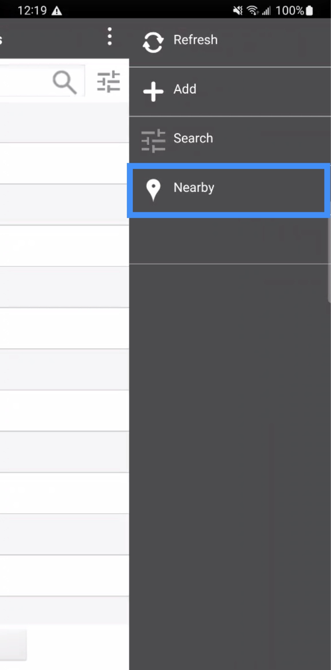 Once you access the "Nearby" option, all the customers that are near your current location will populate your mobile device. You can also use the search bar (called "My Location") to locate a specific address: