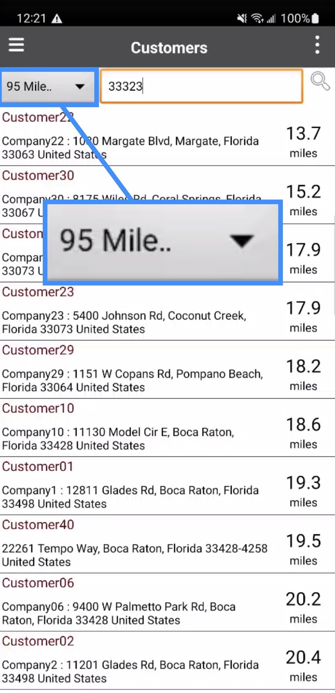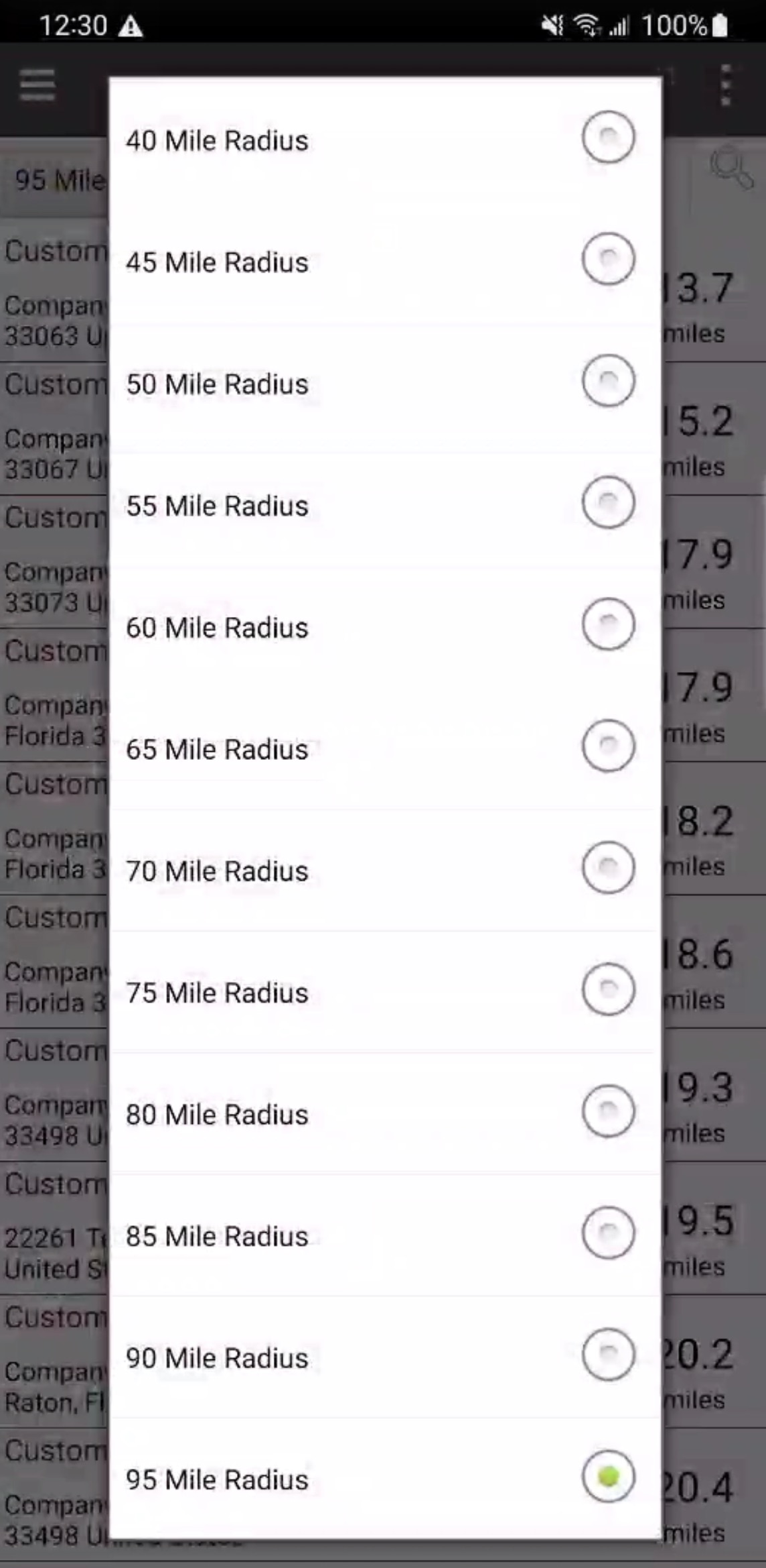 Select the desired distance radius from the displayed options to further augment your search for nearby customers: