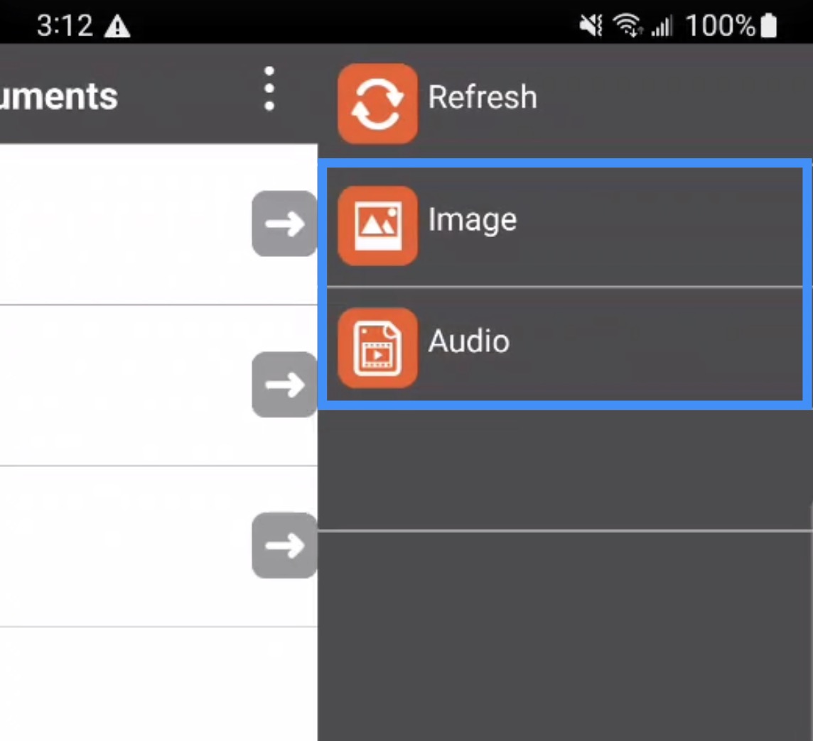 To add a new image or audio file, press the Actions Panel and select the desired format: