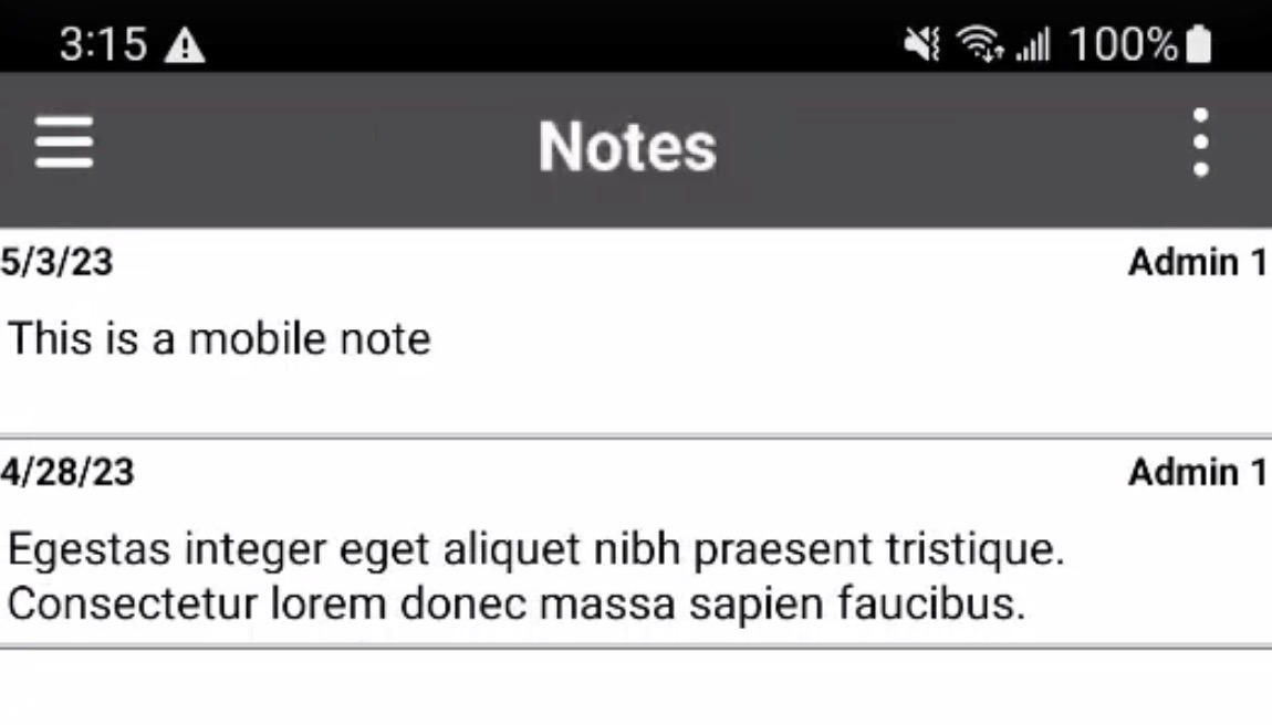 You can add a note about the customer (e.g., to keep the office appraised or as a note for future reference). The "Notes" feature will allow you to view all the notes associated with your customer: