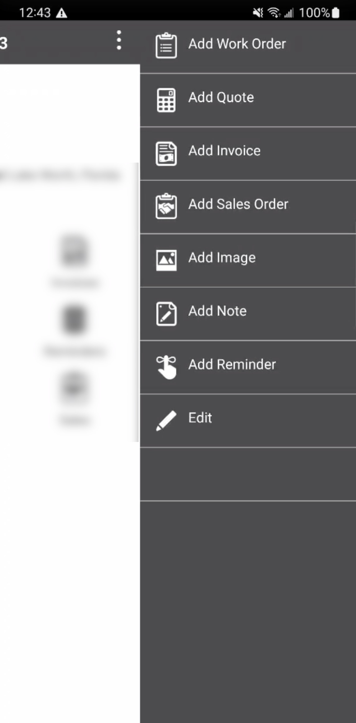 This action will allow you to add a work order for the selected customer. For more information on how to add a work order through the mobile device, please see the Add Work Order page.