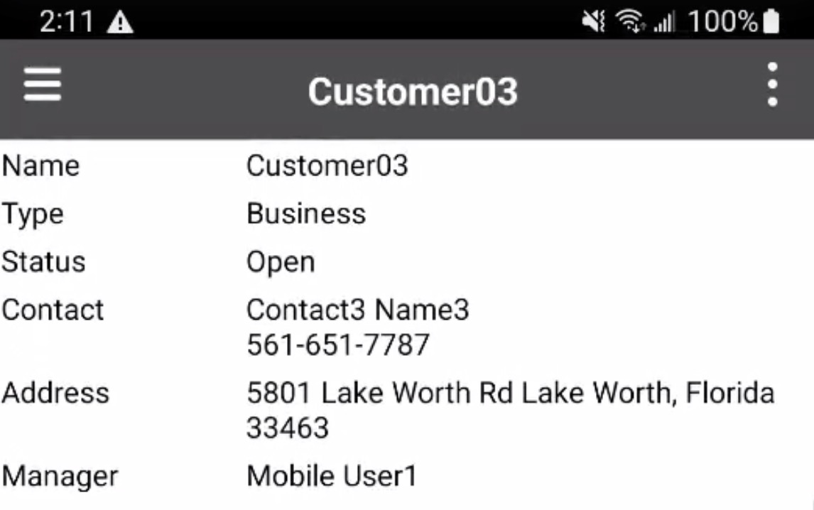 By pressing on a desired customer in the MobiWork App, you will be able to access additional features including the customer’s general information.