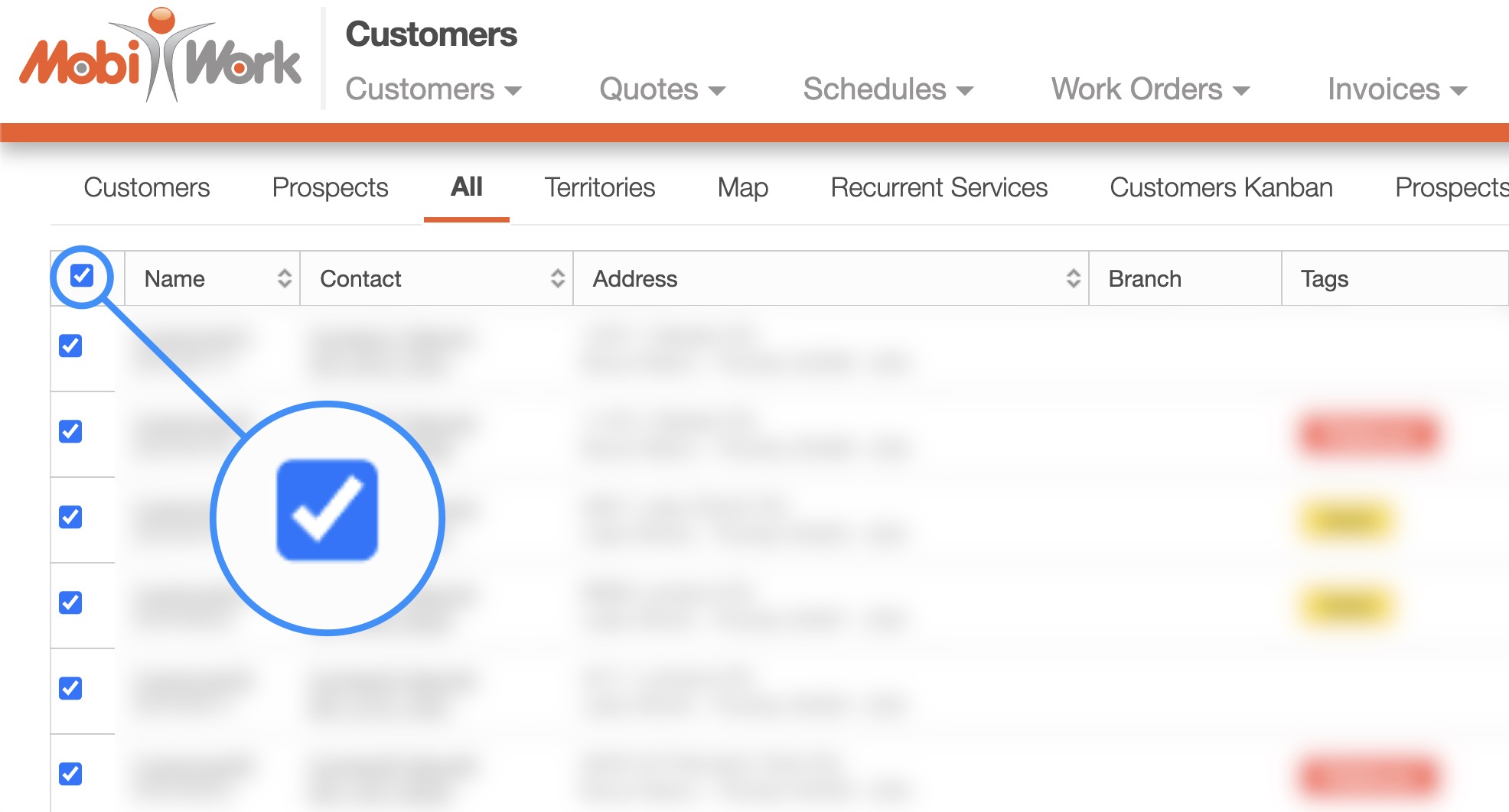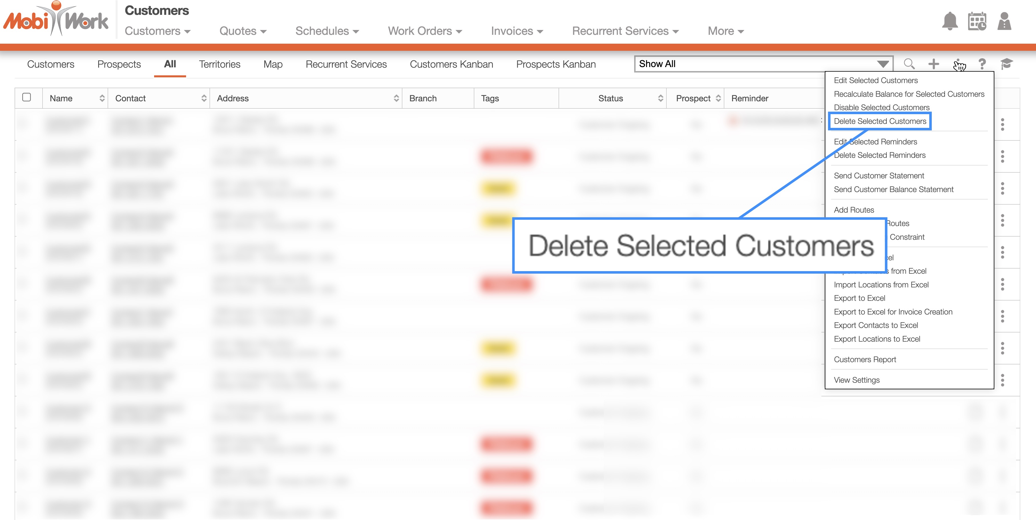 MobiWork allows you to delete multiple customers at once, thus saving you time and energy from having to delete customers one at a time.