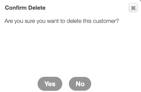 Regardless of how you choose to delete an individual customer, the Confirm Delete pop-up window will automatically appear: