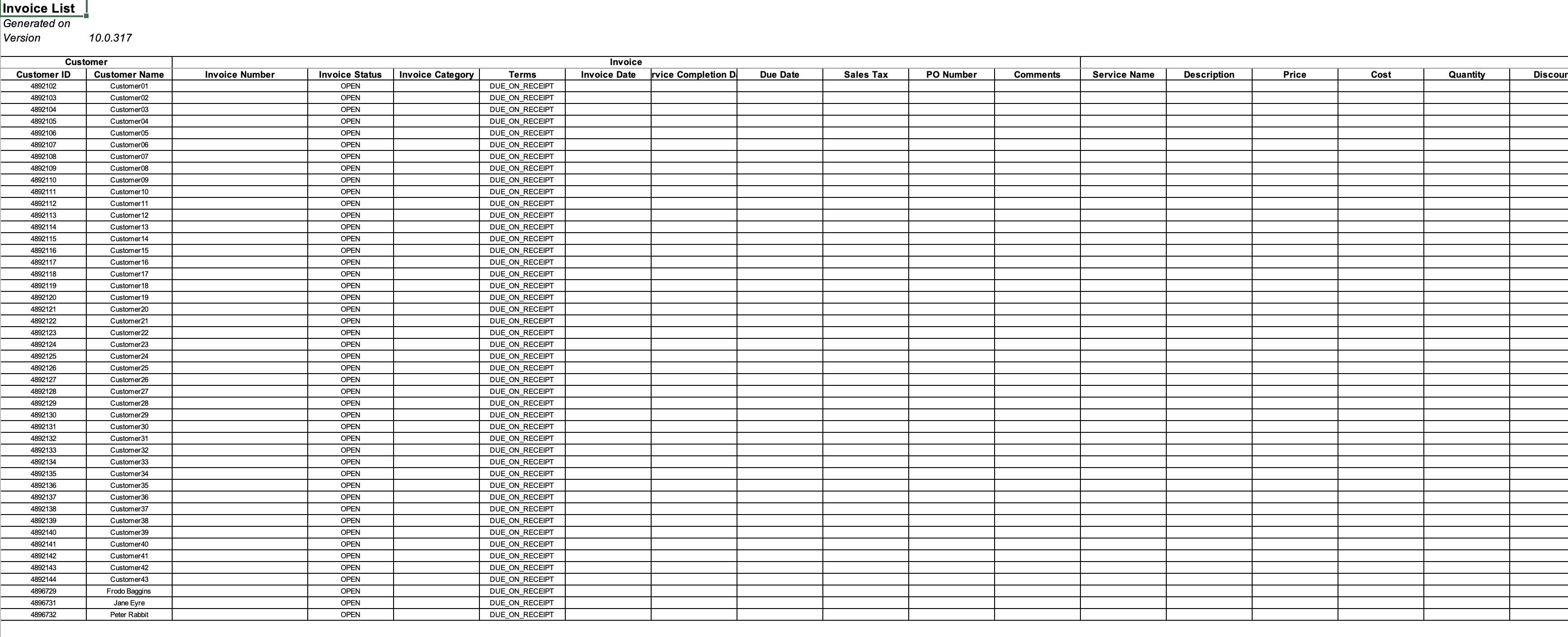 By selecting the "Export to Excel for Invoice Creation" option, your Excel document will be formatted to allow manual input of invoices, which can then be uploaded into MobiWork:
