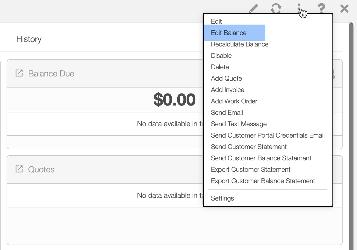 The "Recalculate Balance" option will update the customer balance based on recent changes to the invoice and billing, thus issuing a reset to ensure all information is accurately processed.