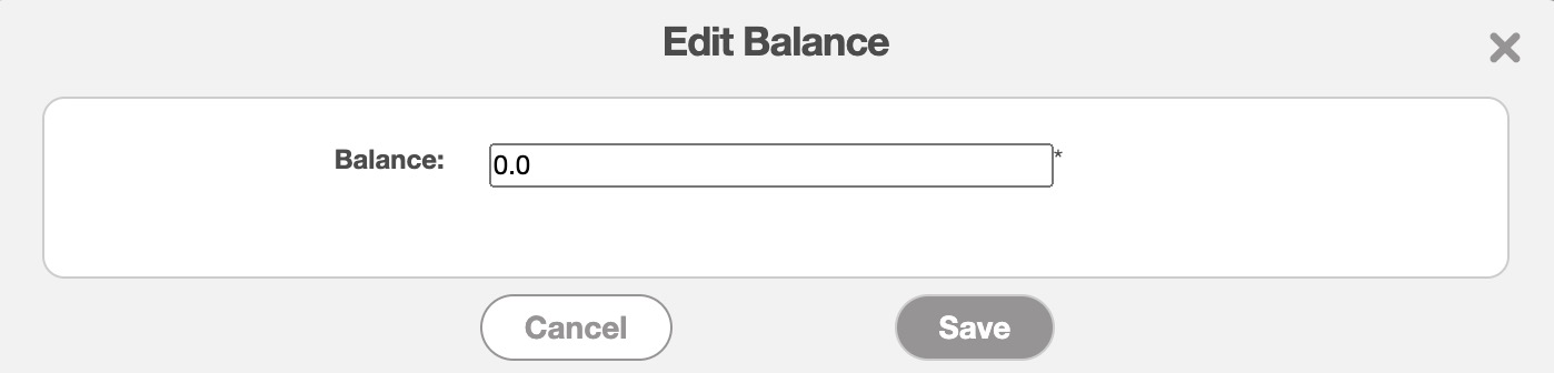 The Edit Balance pop-up window will appear. Enter the desired amount and click the Save button: