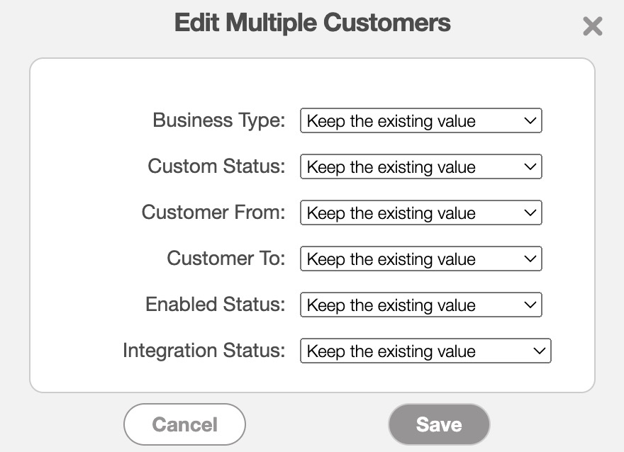 Once you click on the "Edit Selected Customers" option the Edit Selected Customers pop-up window will appear: