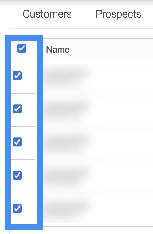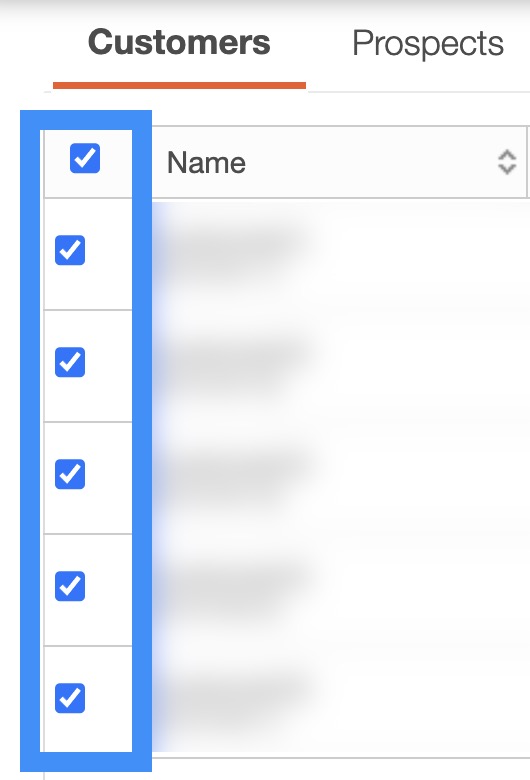 The checkboxes (multiple selection area) found to the left of the "Name" column, will allow you to select either one or multiple recurrent customers to manage, edit, remove, etc.: